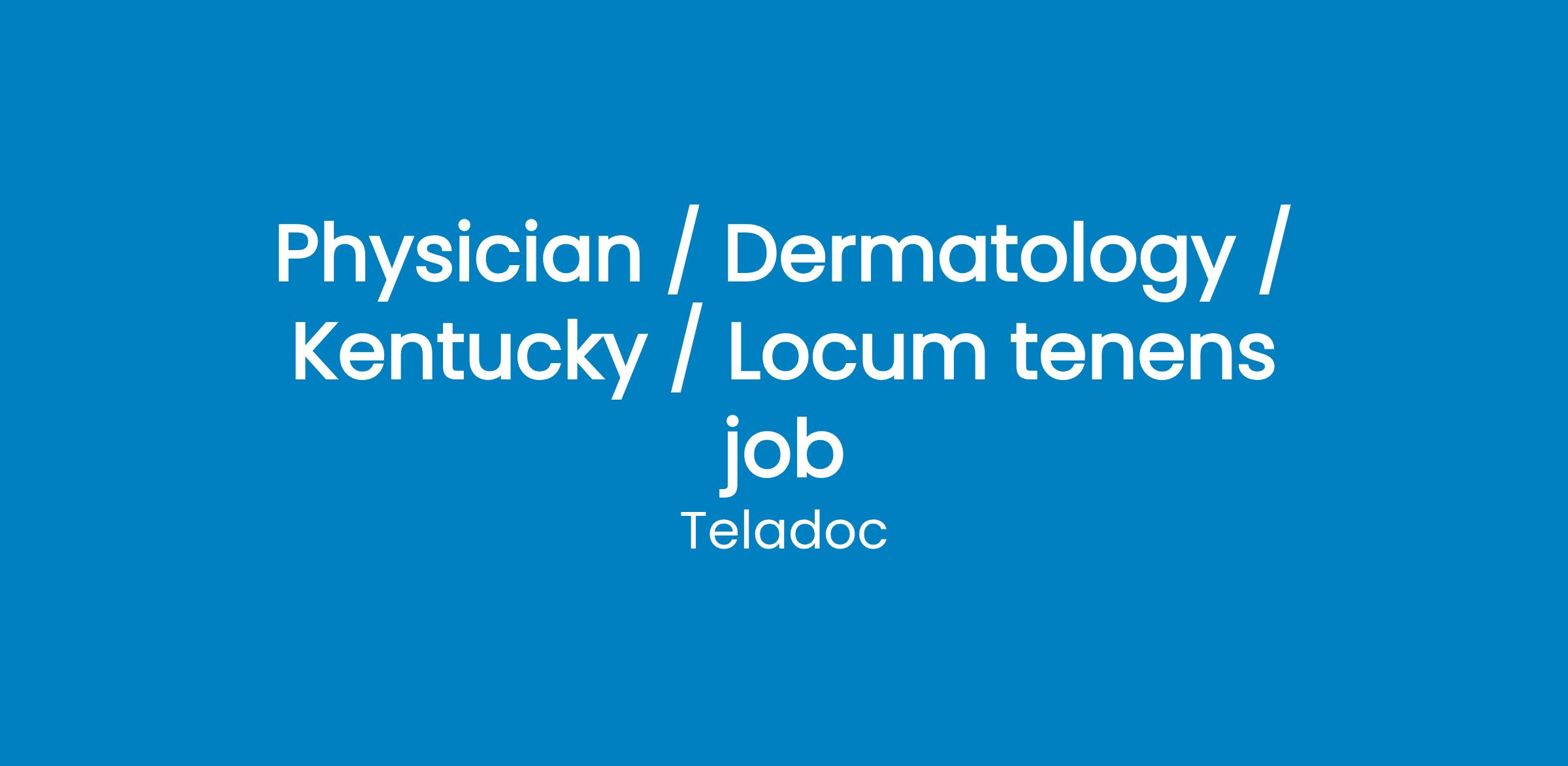Position Summary The Leader in the Telehealth Industry is currently seeking Board Certified Dermatologist.