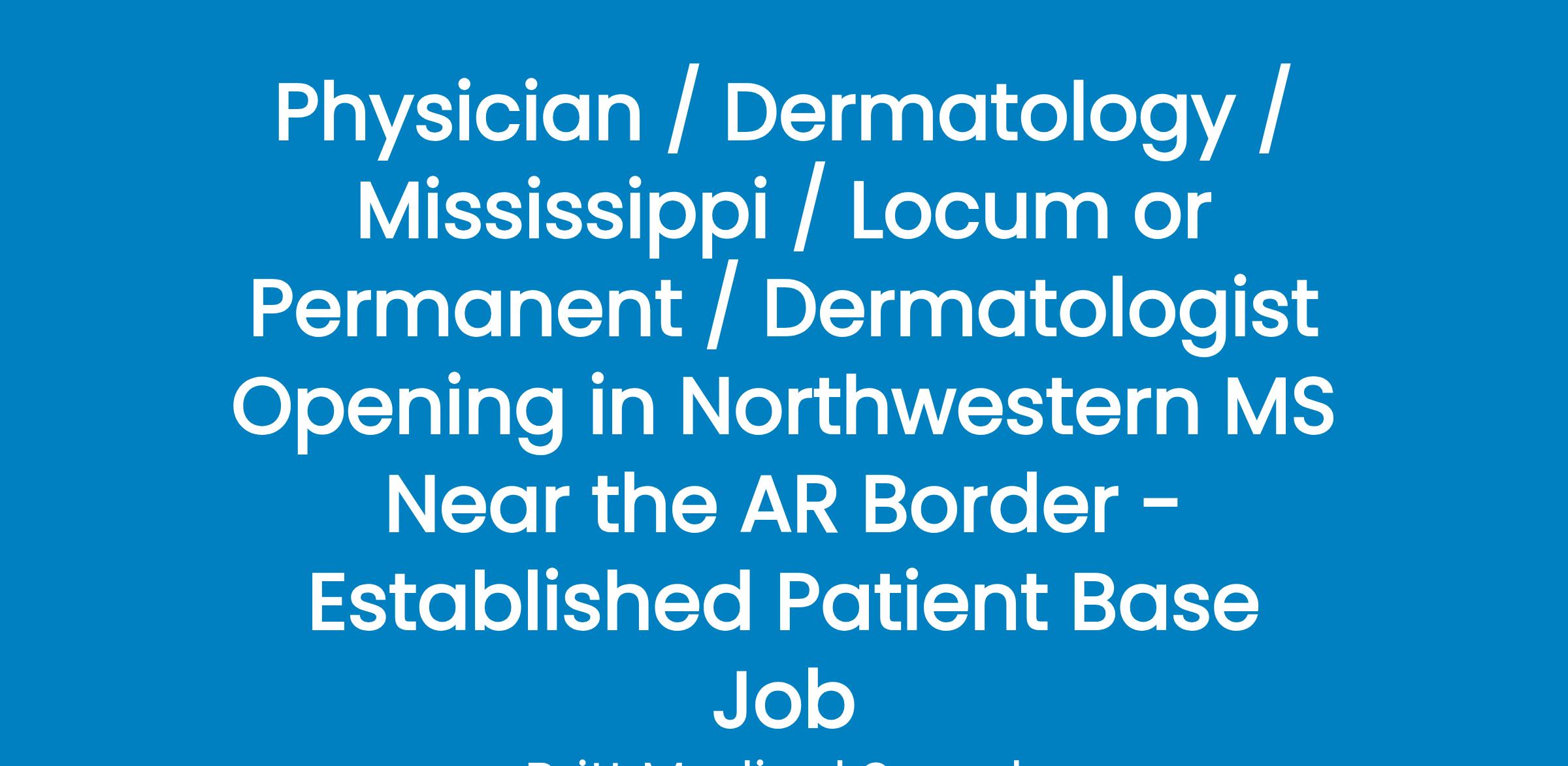 Seeking a BE/BC Dermatologist to join an established private practice in northwestern Mississippi.