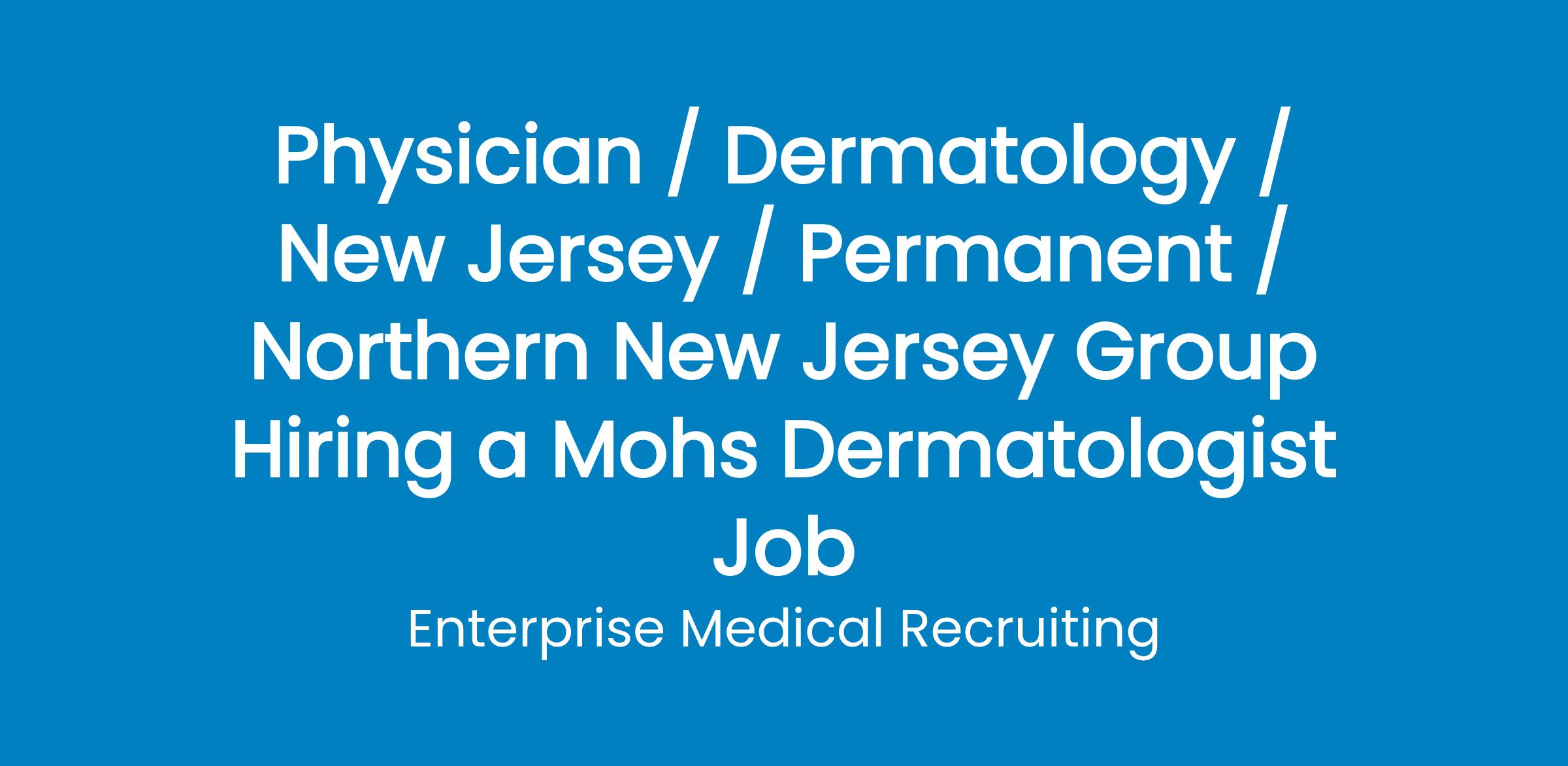 We are scheduling interviews with a well-established Northern New Jersey area single-specialty practice, seeking an additional Mohs Dermatologist due to the growth of the practice and patient demand.