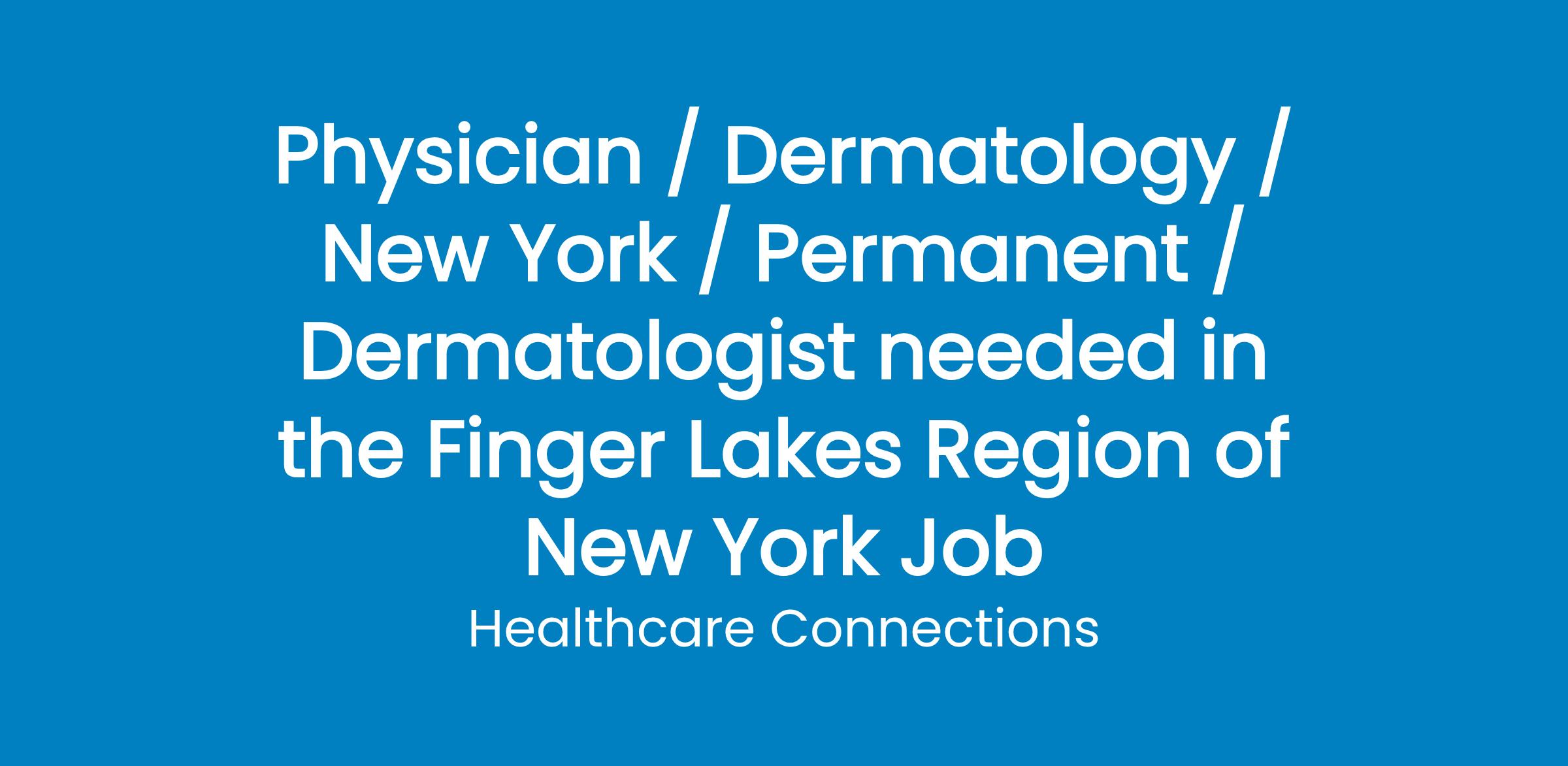 Dermatologist needed in the Finger Lakes Region of New York
