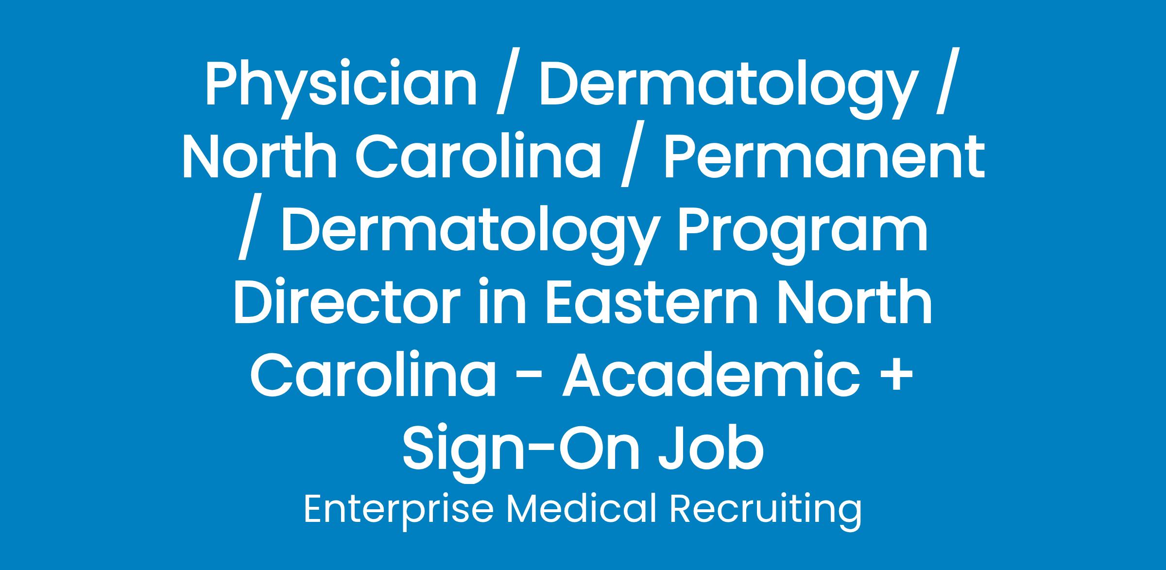We are currently scheduling interviews with a growing Dermatology Department in Eastern North Carolina adding a dermatology residency program director to its team .