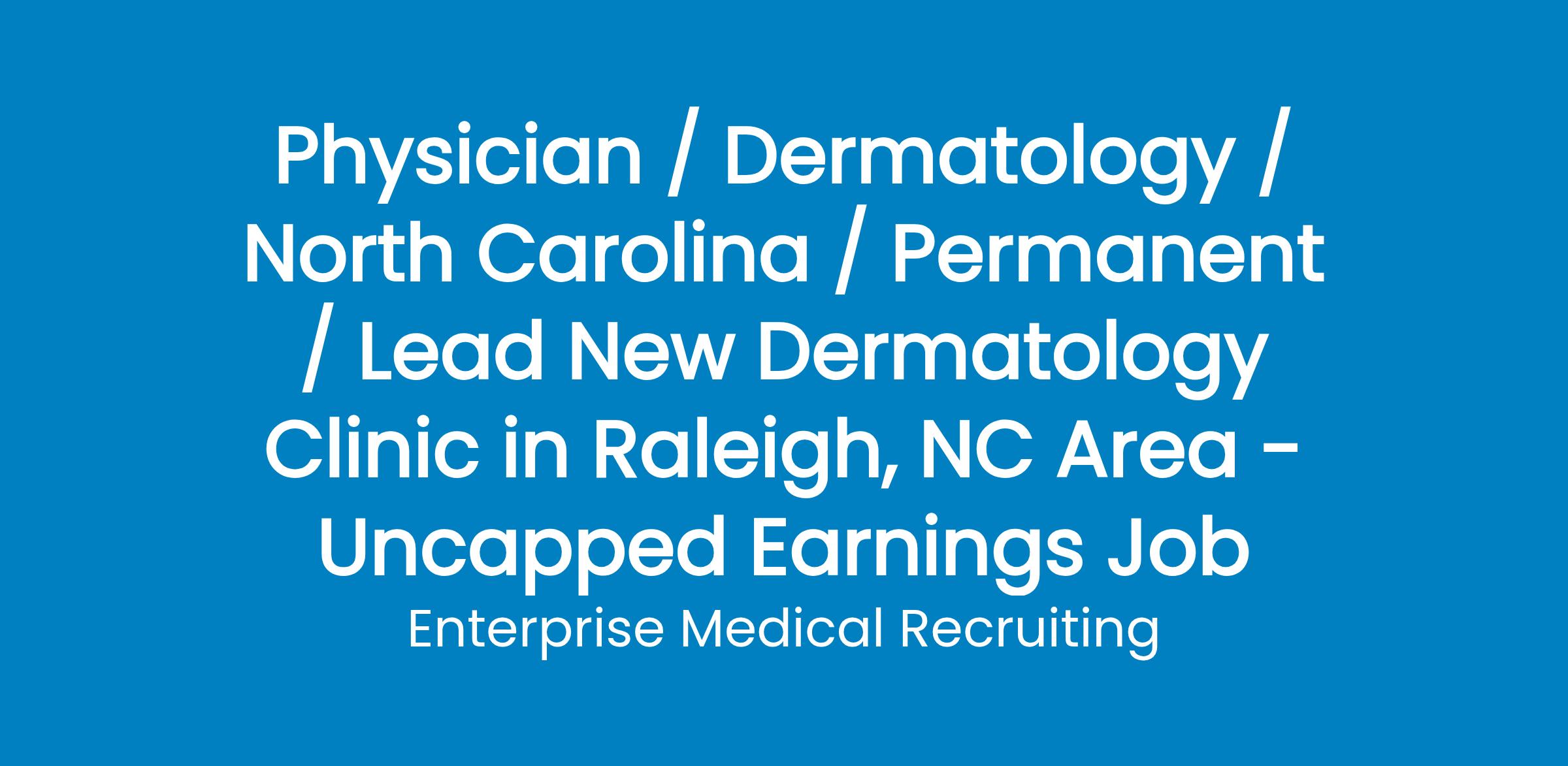 Lead and develop a new dermatology clinic in the Raleigh, North Carolina area! The new physician can practice general, medical, surgical, and cosmetic dermatology. An experienced team provides the business and administrative support to ensure the physician's success .