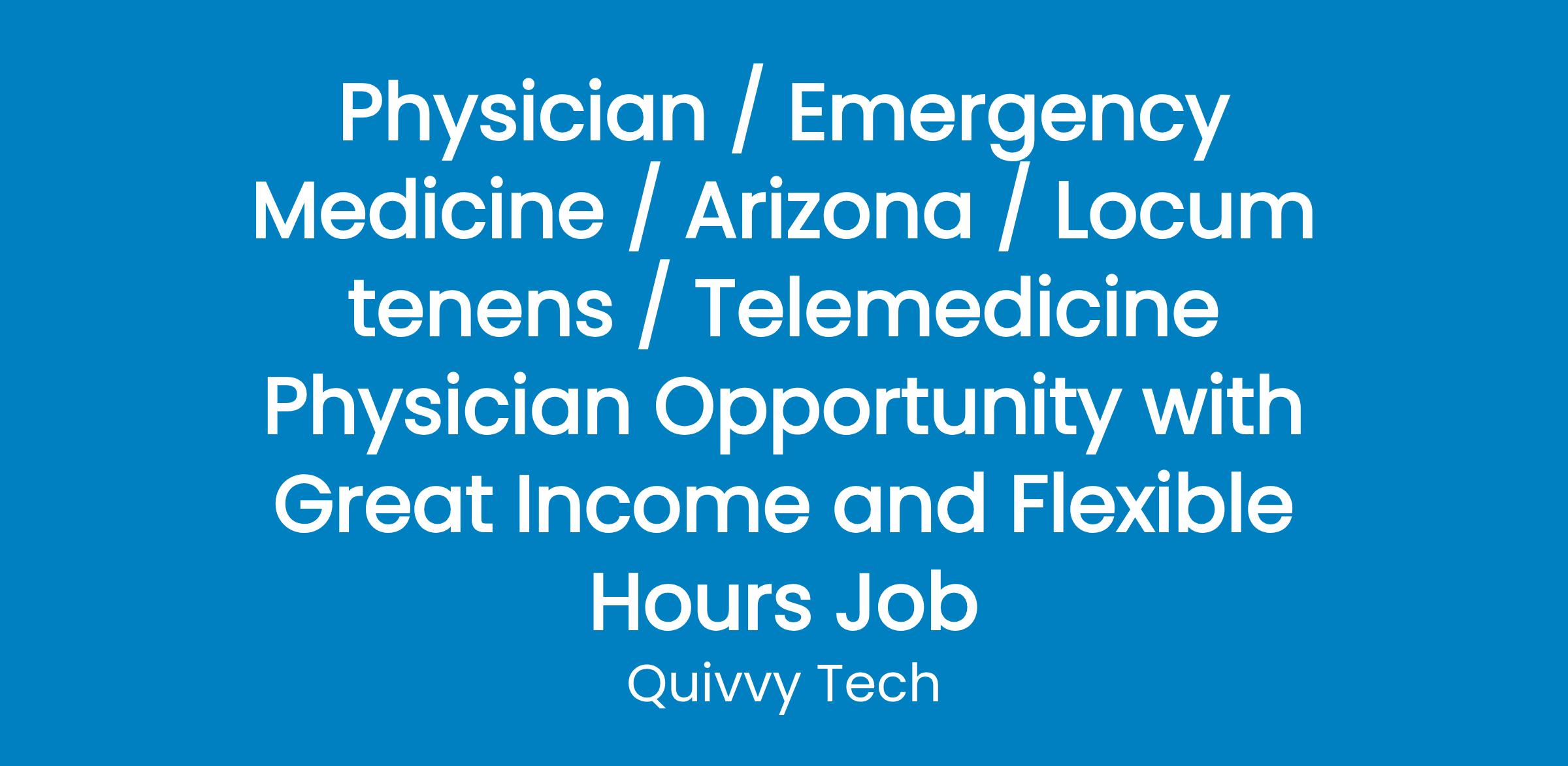 Physician / Emergency Medicine / Arizona / Locum tenens / Telemedicine Physician Opportunity with Great Income and Flexible Hours Job