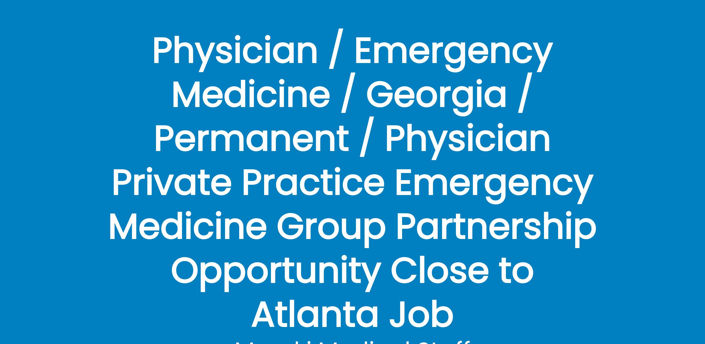 Physician Private Practice Emergency Medicine Group Close to AtlantaAll current physicians are Board Certified EM. $325K salary in year 1, $350K year 2, partnership beginning year 3 - average $450K. Requires a minimum of 2 years experience.Will work 16 8-hour shifts per month (currently 14 of the shifts are day shifts/2 night shifts)Group has 4 Nocturnist (does not need any more)Physician contract including benefits and expenses is with the groupWork 2 EDs within 30 minutes of each otherCurrent Volume 1st ED 65,000/year 2nd ED 45,000/yearBoth EDs are level II Trauma facilities100% Democratic groupFull partnership after year 2Group also employs NPs/PAsOnly looking for EM trained BC/BE candidates with more than 2 years experienceThe Community:The town is a thriving, progressive communityhome to a vibrant arts scene with plentiful art galleries and festivals, a regional university and other post-secondary schools, excellent public and private schools and a strong local economy.The area offers a wealth of cultural, recreational and tourist attractions to suit any taste. From theatre to arts and crafts, golf to tennis, and a beautiful state park, you'll find it all here. Diverse activities include community theater, community chorus, community band, children's theatre, art exhibitions, a storytelling festival, violin classes, arts and crafts attractions and special musical performances.