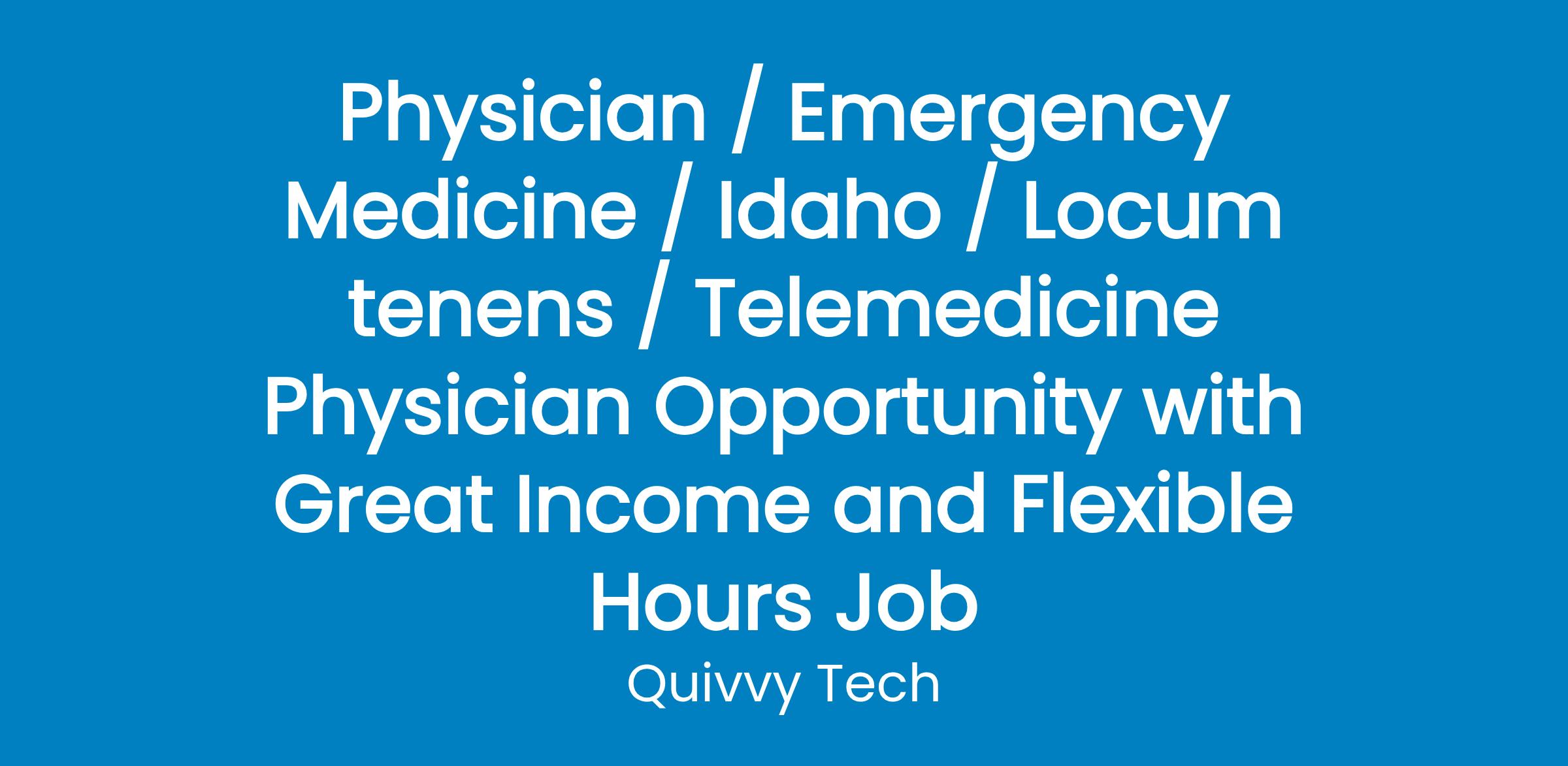 Physician / Emergency Medicine / Idaho / Locum tenens / Telemedicine Physician Opportunity with Great Income and Flexible Hours Job