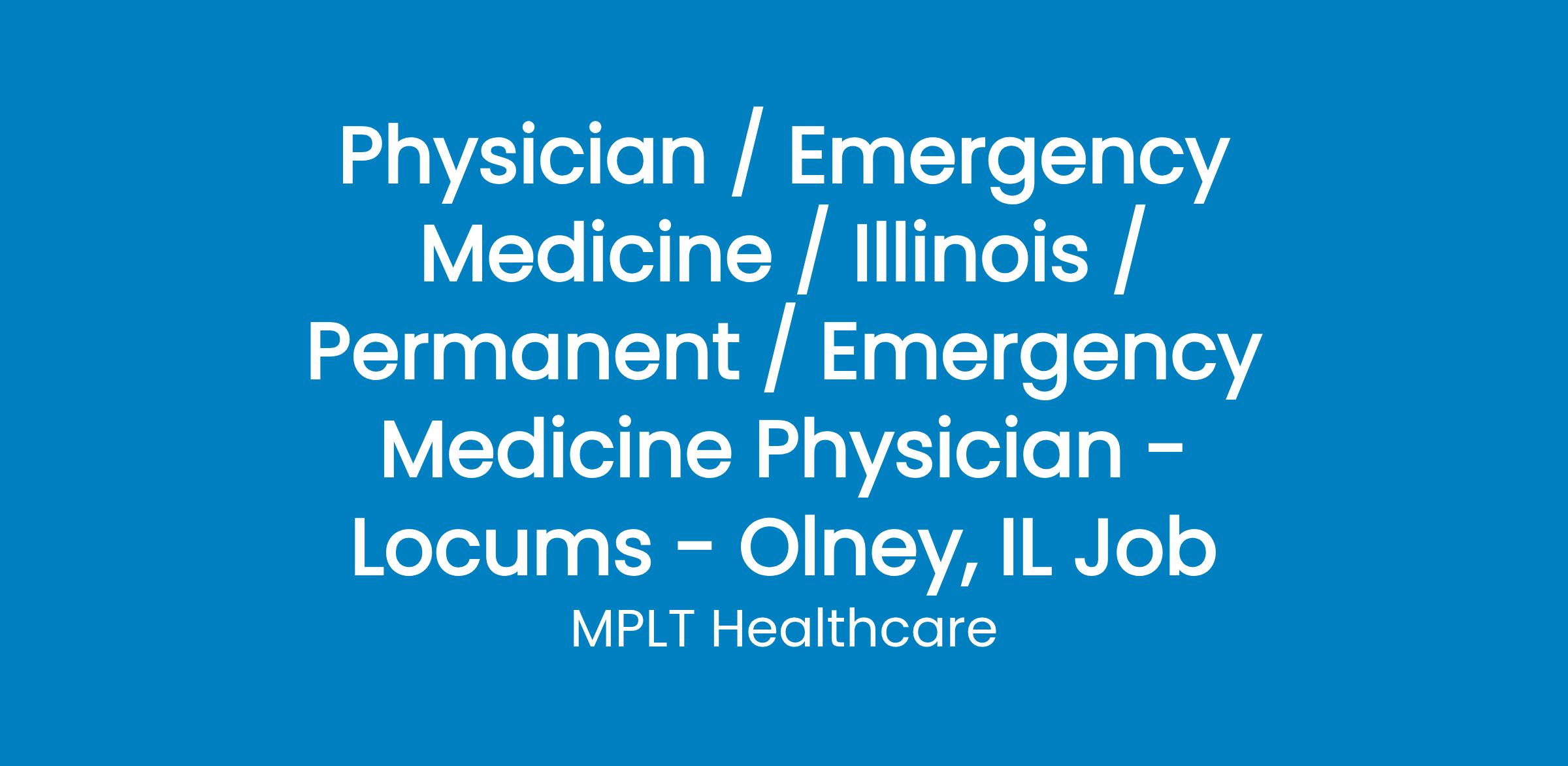 MPLT Healthcare is looking for physicians who Understand the Urgency, Never Give Up, and Have the Courage to Excel in the forever changing medical industry! We have numerous opportunities for an experienced Emergency Medicine Physician with highly competitive pay rates in Olney, IL.