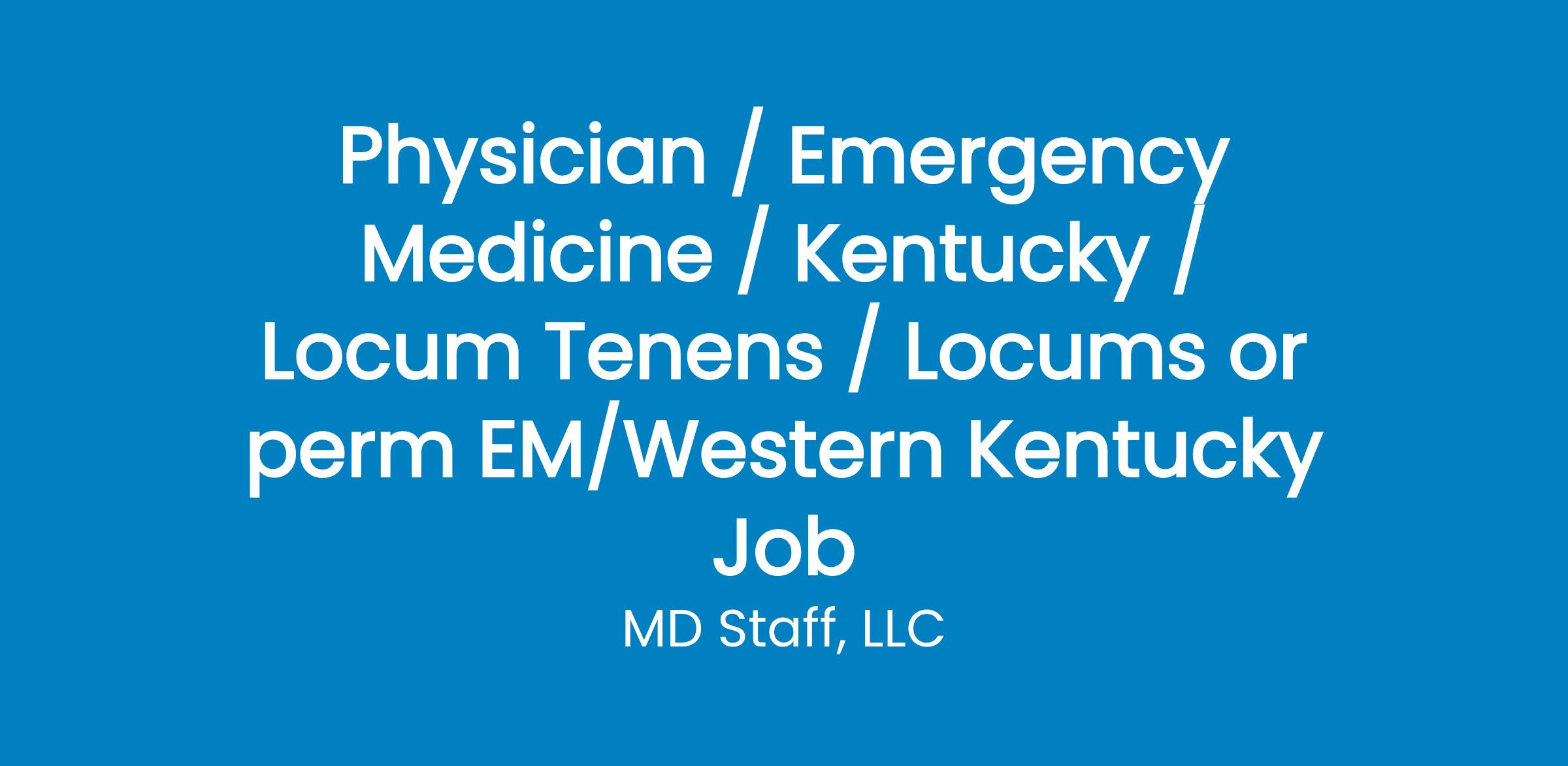 Permanent Emergency Medicine Position near Maple Mount, KY Overview: