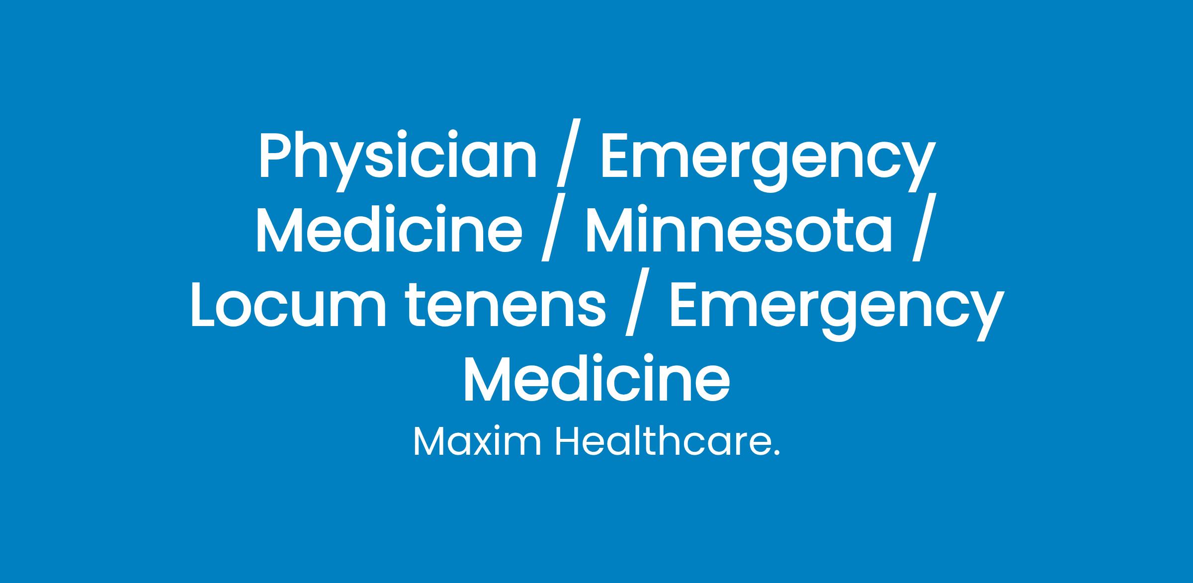 We are seeking a Doctor of Medicine (MD) to work at one of our partner facilities. Maxim Healthcare is seeking an Emergency Medicine provider that has flexibility and being able to cope with a constant varying workload in a fast paced environment; able to work effectively with nursing & physician staff in a professional manner; excellent communication skills and the ability to explain choices to patients & their families, as well as the capability to work under pressure while making quick, accurate decisions independently.Seeking a provider that has experience working in a very busy, small community hospital. New grads would NOT be a good fit for this assignment. The selected locum provider will be covering at Austin/Albert Lea (22 miles apart), as well as Owatonna and Red Wing.ABEM; MUST BE EMERGENCY MEDICINE RESIDENCY TRAINED20-25; 1.5-2 patients per hour; 18,000 ED visits per year Schedule:7:00 a.m. - 7:00 p.m.; 11:00 a.m. - 11:00 p.m. 7:00 p.m. - 7:00 a.m.If you are interested please contact me at or .