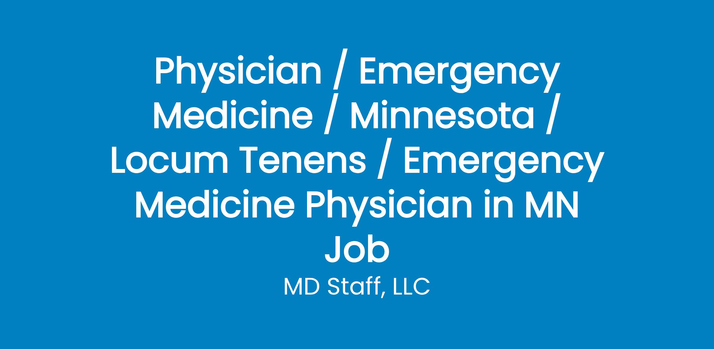 If you are interested in this exciting Emergency Medicine locum opportunity near Sebeka, MN, please apply now with reference Job ID to learn more!