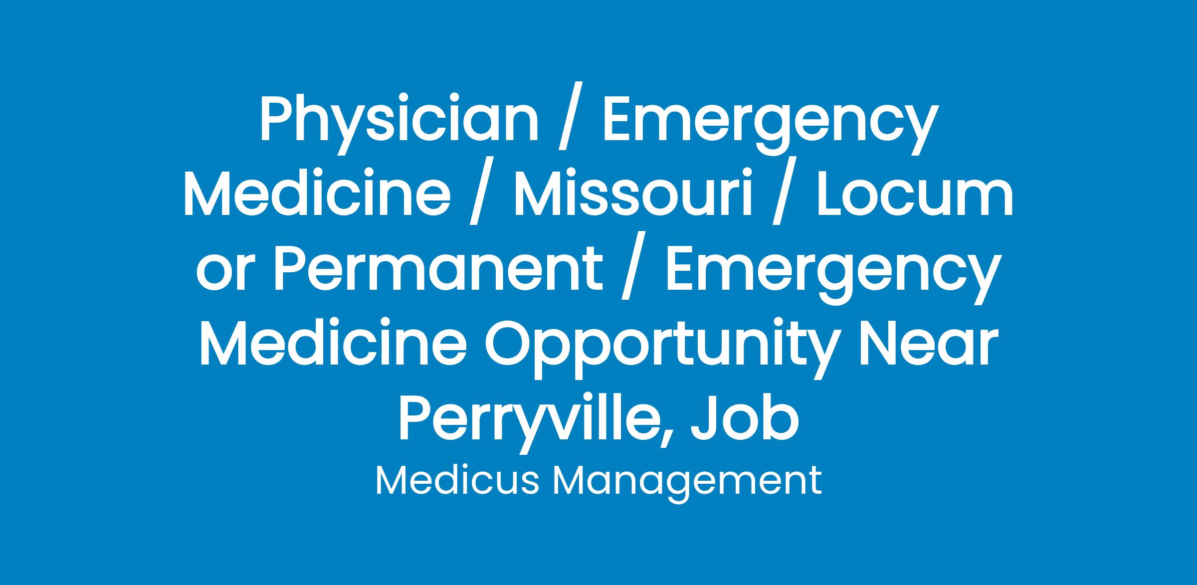 Emergency Medical Care, LLC. (EMC) has an excellent full time or part time opportunity for a Board Certified Emergency Medicine, Family Medicine or Internal Medicine Physician to practice within an Emergency Department within 25 minutes of Farmington, Missouri.