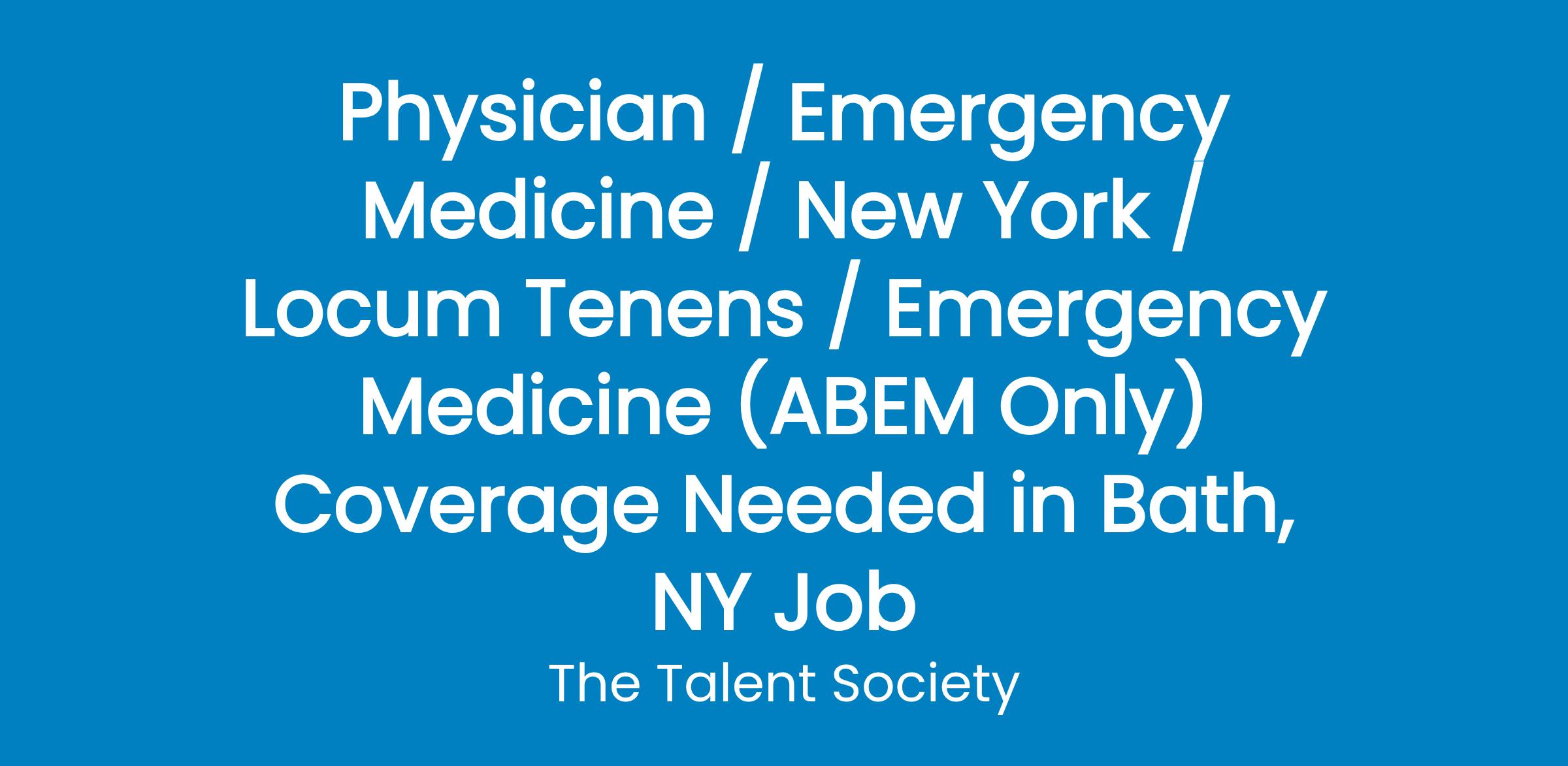 We are currently working with Arnot Health in Bath, NY and they are seeking an ABEM-certified Emergency Medicine physicians to provide coverage at Ira Davenport Memorial Hospital starting in April. As part of Arnot Health, Ira Davenport Memorial Hospital is a non-trauma, acute care facility offering a low-volume, community-focused emergency department known for its collaborative and patient-centered approach. The hospital supports both emergency and inpatient care while maintaining a strong connection to the local community. Arnot HealthIra Davenport Memorial HospitalBath, NYNon-TraumaAcute Care Hospital with 35 total bedsAnnual ED Volume: 9,500Daily ED Volume: 26 patientsEmergency Medicine (ABEM ONLY)Coverage Needed starting in April Ongoing Shifts Times: 7a-7p or 7p-7a or 7a-7a (24 hour shifts) Dates Needed: - April 7-10: 7 AM 7 PM- April 12: 7 AM 7 PM, 7 PM 7 AM, 7 AM 7 AM- April 26: 7 AM 7 PM, 7 PM 7 AM, 7 AM 7 AMCoverage Model: Single physician coverage with one APPNo fast trackED physicians are responsible for codesPossible hospitalist coverage (to be confirmed based on operational needs)EMR System: EPICBest, Maci Matherne RecruiterThe Talent Societyo. f. w.