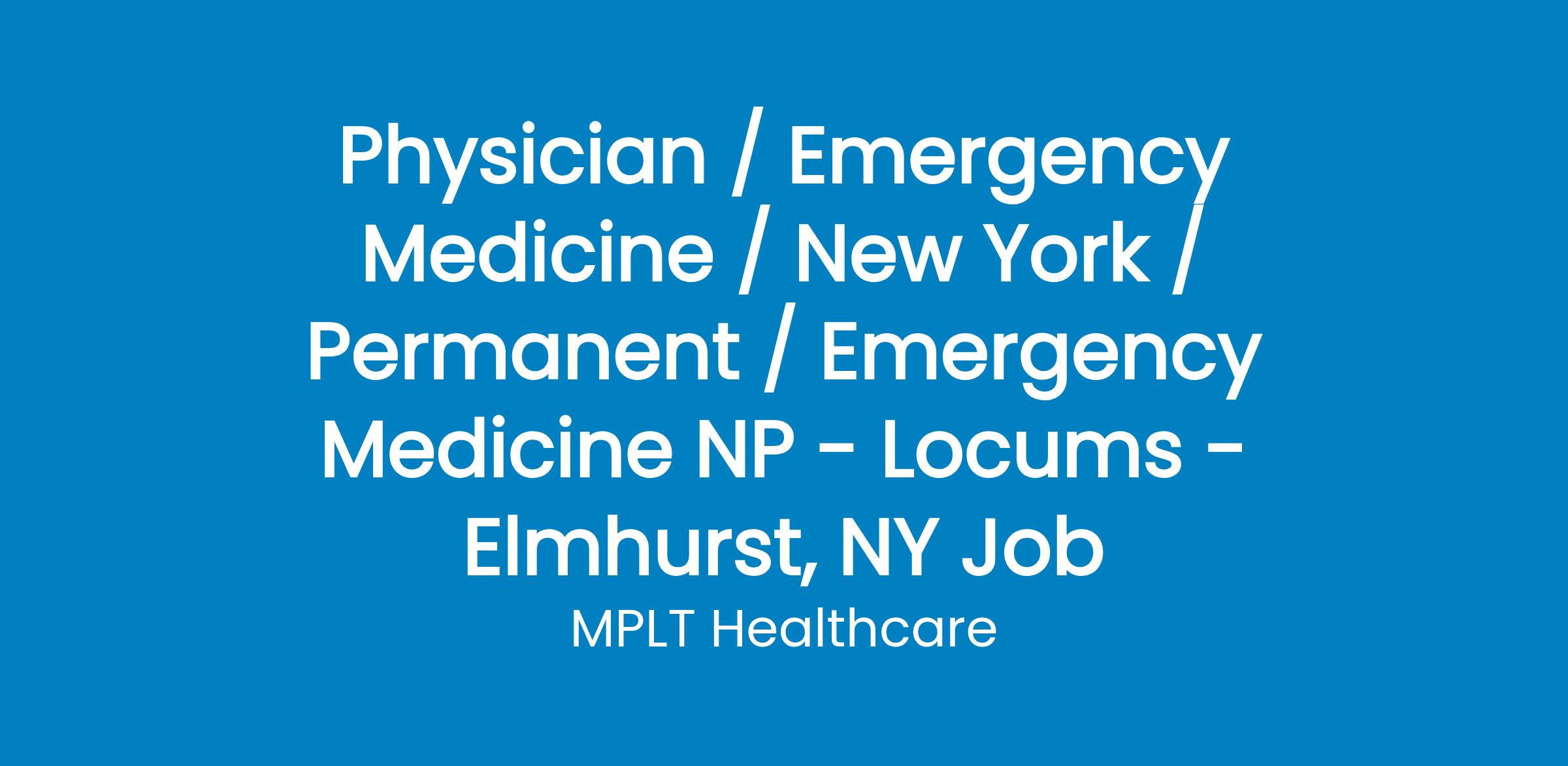 MPLT Healthcare is looking for practitioner s who Understand the Urgency, Never Give Up, and Have the Courage to Excel in the forever changing medical industry! We have numerous opportunities for an experienced Emergency Medicine NP with highly competitive pay rates in Elmhurst, NY.