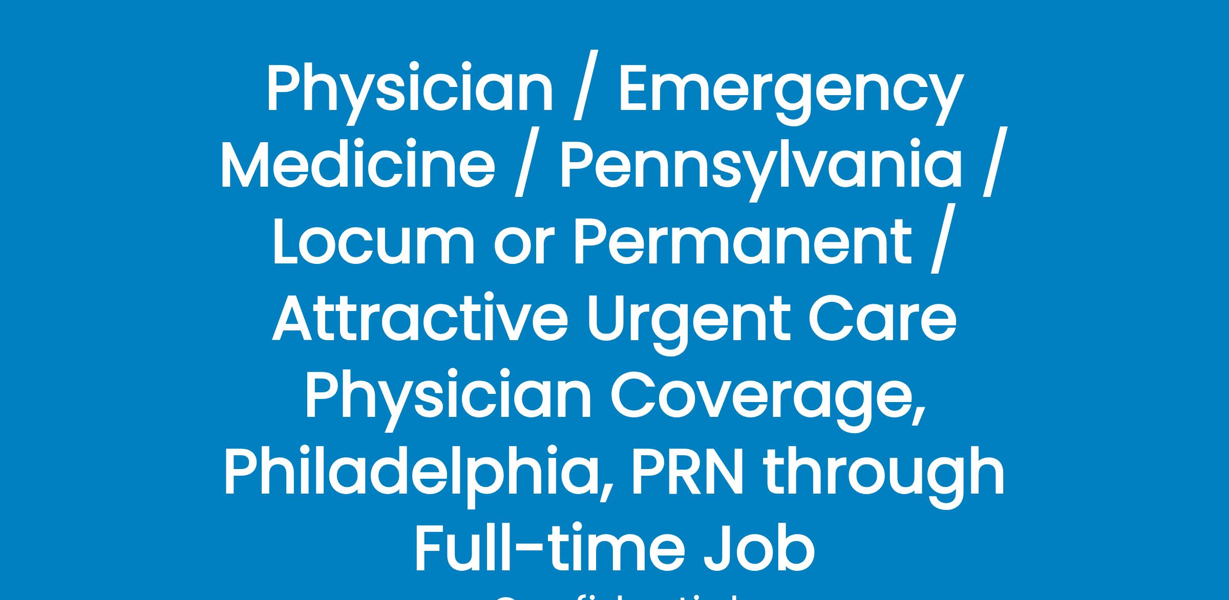 COVERAGE NEEDED: Outpatient Urgent Care Physician Coverage in/around the Philadelphia, PA metro area.
