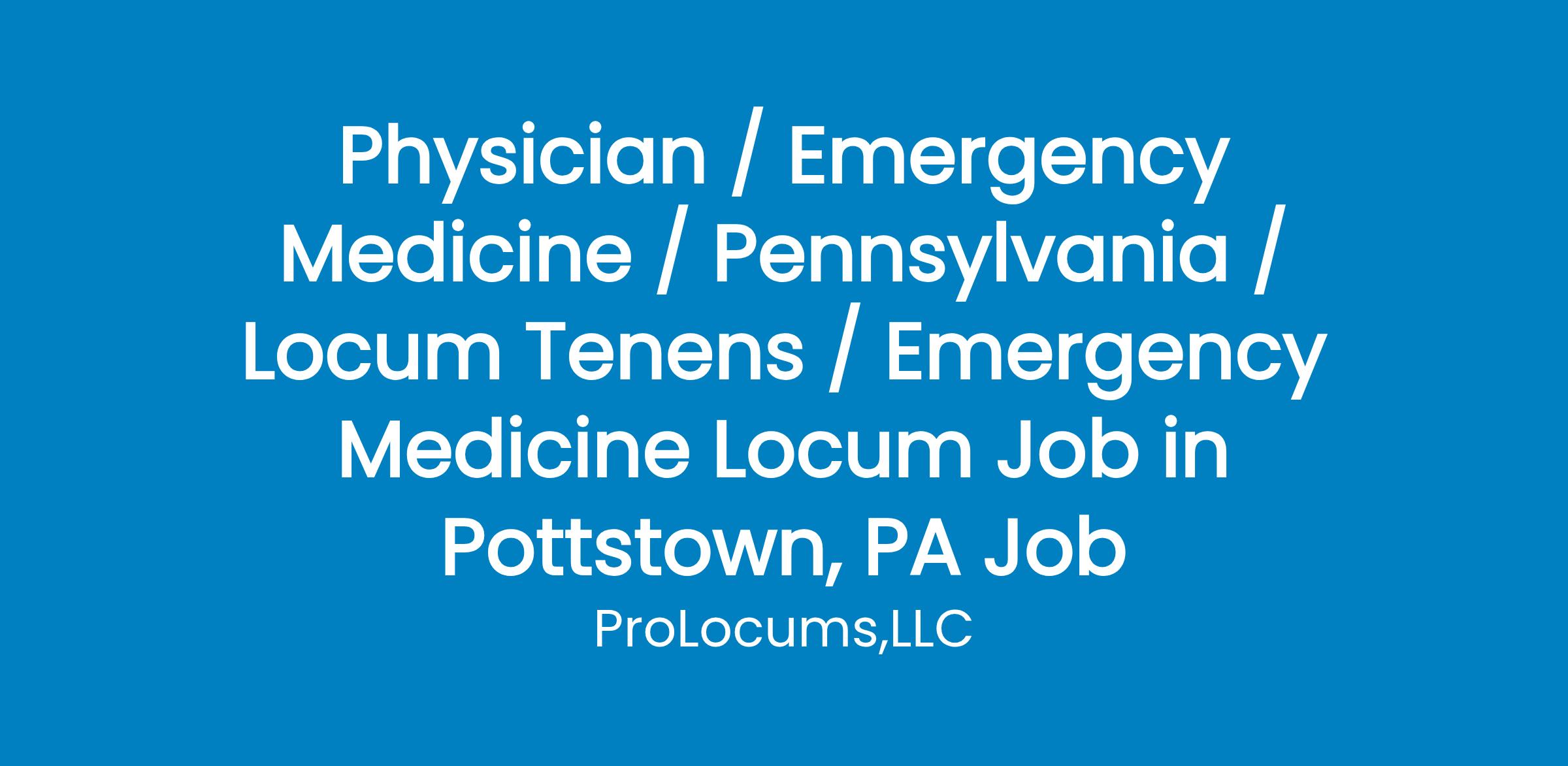 New locum for a Pottstown PA facility needing 2 providers to offer approximately 4 shifts a month (12 hour shifts anticipated). No rounding is required. If you have more availability, that is preferred. Required: PA active license, BC/BE, Adult Emergency Procedures required,Details: Typically 1.6 pts/hour, assistance from other Emergency Medicine providers and APPS. Could become a full time opportunity in future. Interested? Apply today!