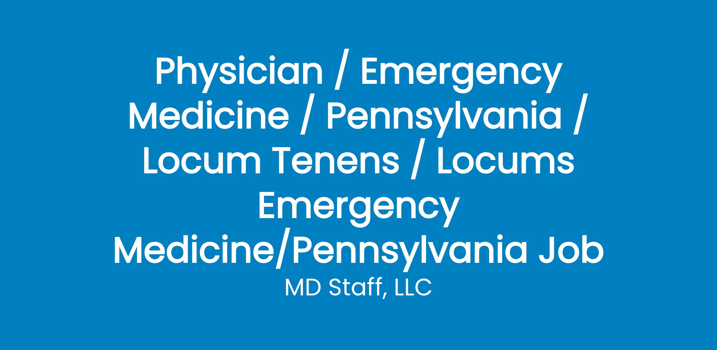 Exciting Locum Tenens Opportunity for Emergency Medicine Physicians in Pennsylvania! Are you a dedicated Emergency Medicine Physician seeking a rewarding locum tenens opportunity? We have an immediate opening for coverage at a reputable facility located near Loyalhanna, PA. Position Details: Specialties: Emergency Medicine Department: Emergency Medicine Start Date: ASAP End Date: Ongoing Allowed Holidays: 4th of July, Thanksgiving Day, New Year's Day, Memorial Day, Christmas Day, Labor Day Providers Requested: 1 Provider Title: Physician Provider Type: Locum Tenens Coverage Type: Scheduled Clinical Hours Only EMR System: Not specified Facility Accepts Multiple Providers: Yes Practice Setting: Inpatient Admissions Required: Yes Temporary Privileges Available: Yes Hospital Stroke Certified: Yes Patients Per Shift: Avg 2 patients per hour Bed In Department: 468 bed facility Practice Details: Board Certification: Required; Fellowship preferred Minimum Board Certification: Eligible Certifications Required: ABLS, ACLS, ATLS, BLS, PALS License: Active license in PA Trauma Level: 1 PEDs Level: 3 Support Staff and Supervision: Number of Support Staff: Not specified Advance Practice Providers Supervision: No Specialty Questions: Emergency Medicine Do the following support services have 24 hours availability at the facility? Anesthesia: Yes Cardio-Thoracic Surgery: Yes Catheterization Lab: Yes General Surgery: Yes Laboratory: Yes Neuro-Surgery: Yes OR Response Time: Yes Orthopedic Surgery: Yes Radiology: Yes Vascular Surgery: Yes COVERAGE NEED: Emergency Medicine All ER locums must be Residency Trained in Emergency Medicine and Board Certified in Emergency Medicine. Dates: Nov 23, 7p-7a Nov 24, 7p-7a Dec 24, 7p-7a Please list availability in the bid presentation for dates. Requirements: MUST HAVE PA PERMANENT LICENSE MUST be ED Trained and ED American Board (ABEM or AOBEM) Certified Level 1 Trauma Center, Level 3 NICU, Primary Stroke Center, STEMI Receiving Center Licensed 468 bed facility ED: 55-56K annual visits Average of 2 patients/hr. Air transportation ED Residency Program Ancillary Services: Cardiovascular, neurology, neurosurgery, oncology, radiology, general surgery, urology, ENT, plastic surgery Located near Loyalhanna, PA If you are interested in hearing more about this opportunity, please call or text MD Staff at . You can also reach us through email at . Please reference Job ID . Join us in providing exceptional emergency care!