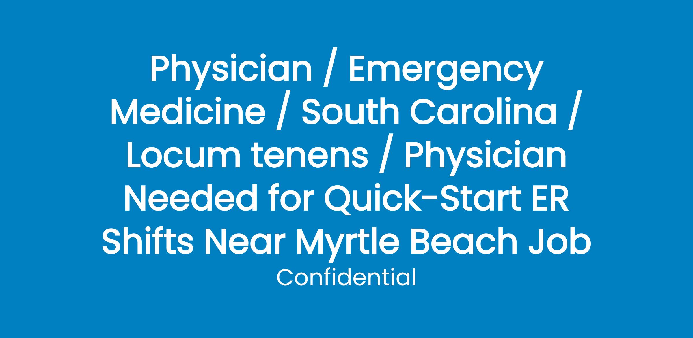 With over 60 miles of sand and waves, the Myrtle Beach area boasts hundred of year-round activities and attractions. Visit Huntington Beach State Park, go kayaking, golfing, or enjoy live music. Moderate volume facility 1.5 hours from coast. Choose from 12 or 24 hours shifts. Single coverage with option of mid-level support. Available start dates as soon as next week through the end of the year. Quick credentialing - privileges granted within 1 week. REQUIREMENTS: Will accept Boarded or Non-Boarded physicians: Emergency Medicine, Internal Medicine, Family Medicine, General Surgery, General Practice. ATLS, ACLS, PALS certifications required. Active South Carolina state license. Travel/lodging/malpractice insurance covered. Call Western Healthcare at 1-. Contact Tara Herring at .