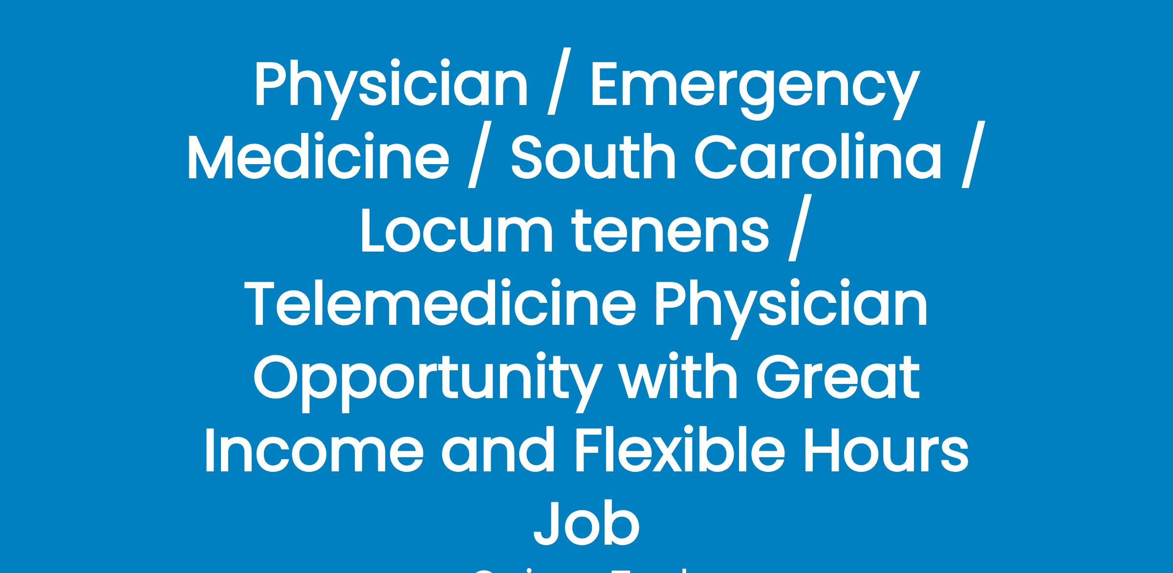 Physician / Emergency Medicine / South Carolina / Locum tenens / Telemedicine Physician Opportunity with Great Income and Flexible Hours Job