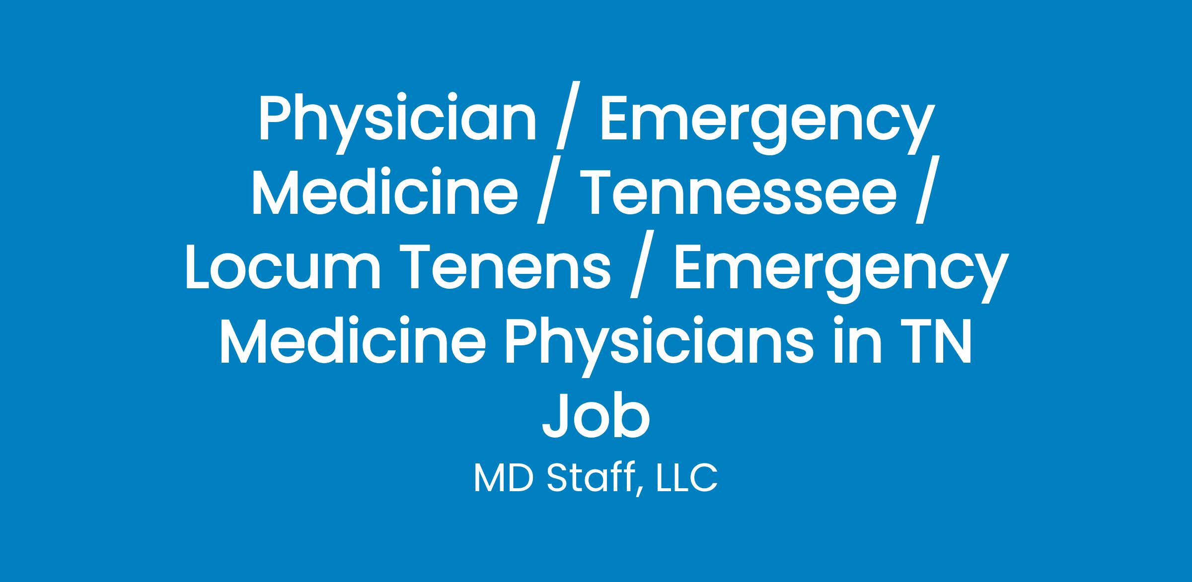If you're a Board-Certified Emergency Medicine Physician looking to expand your career with flexible locum opportunities in Tennessee, apply today! Use reference Job ID when submitting your application.