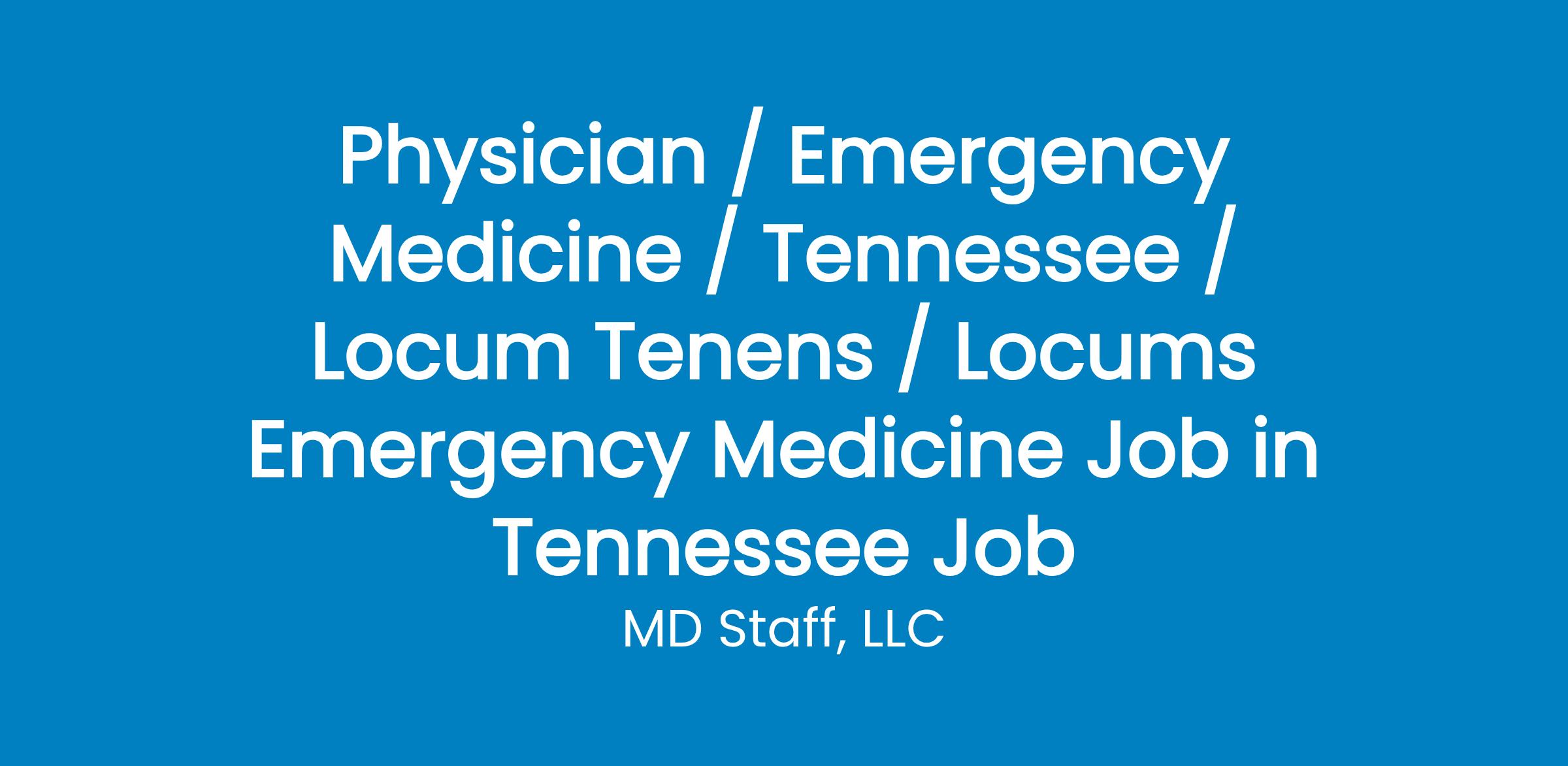 Urgently needing a Locums Emergency Medicine Physician in Tennessee Coverage dates: ASAP - Ongoing Shift would be 6a-6p, 6p-6a minimum 5 shifts per month. Willing to work Nights. No Call. The ideal candidate must be Board Certified EM Candidate must have an active Tennessee state license Located near CLARKSVILLE, TN. If you are interested in hearing more about this opportunity, please call or text MD Staff at . You can also reach us through email at . Please reference Job ID .