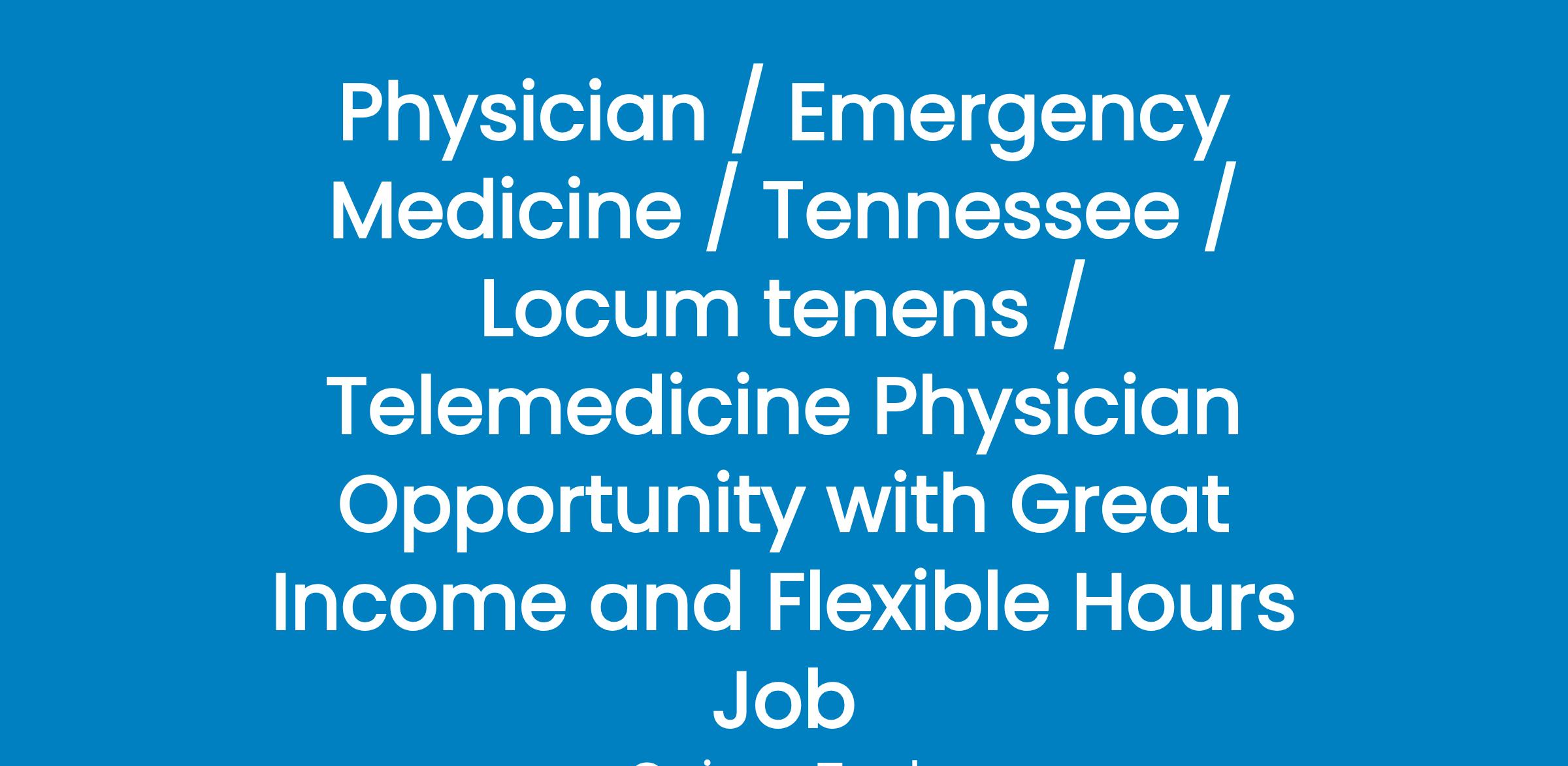 Physician / Emergency Medicine / Tennessee / Locum tenens / Telemedicine Physician Opportunity with Great Income and Flexible Hours Job