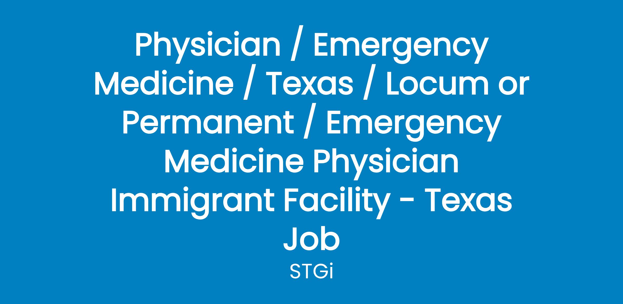 STG International is currently looking for an Internal Medicine, Family Medicine, or Emergency Medicine Physician to provide care to immigrant patients within ICE Health Services Corps (IHSC). This particular opening is located in Conroe, TX. One hour north of Houston, and 40 min from The Woodlands.As a physician practicing in one of the residential immigration facilities, you would create a welcoming place for immigrants while helping to address their health needs and provide the safe delivery of high quality care. For many of these patients, you may be instrumental in delivering first time quality medical care ever received. Call may be taken by telephone.