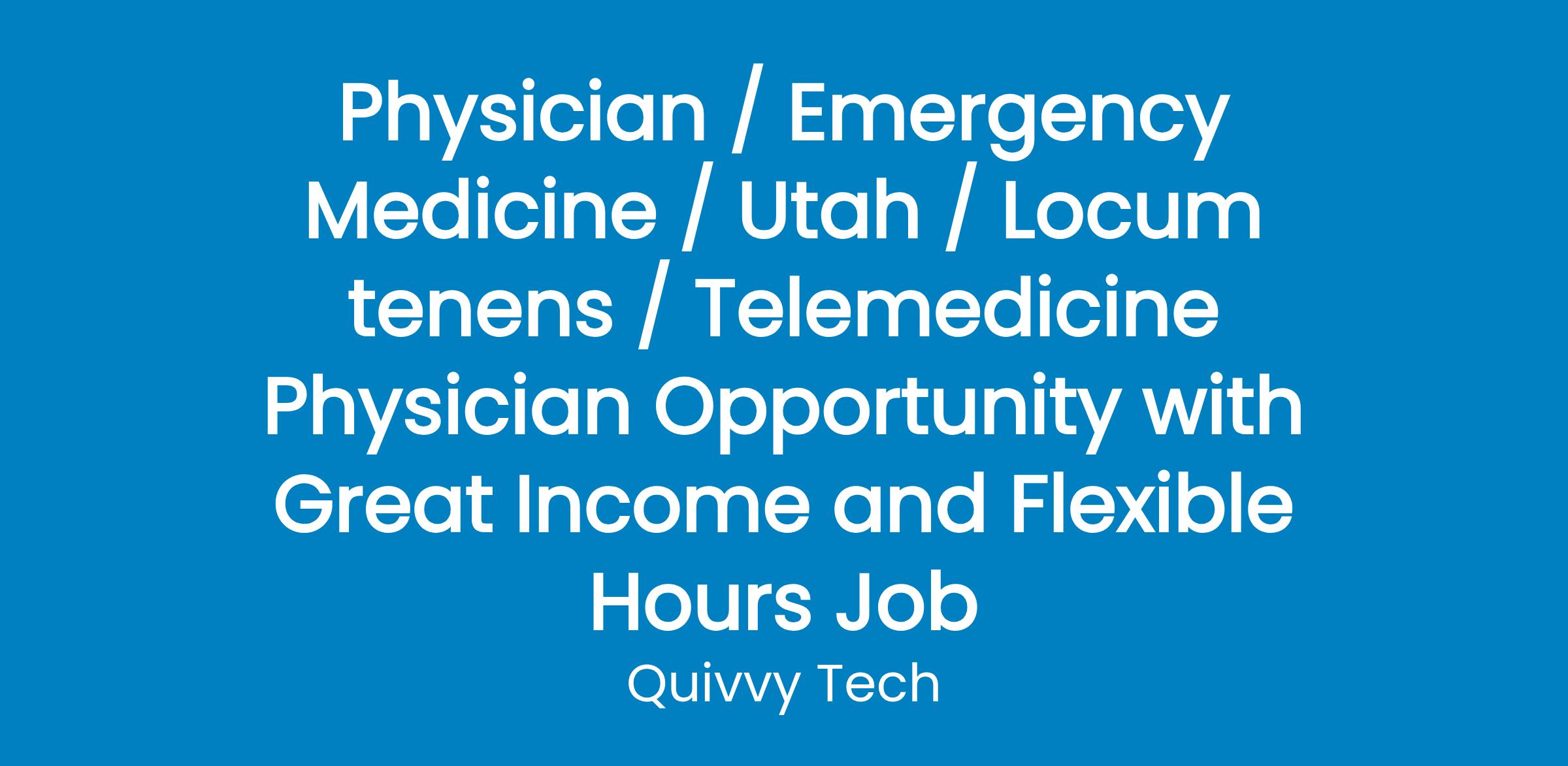 Physician / Emergency Medicine / Utah / Locum tenens / Telemedicine Physician Opportunity with Great Income and Flexible Hours Job