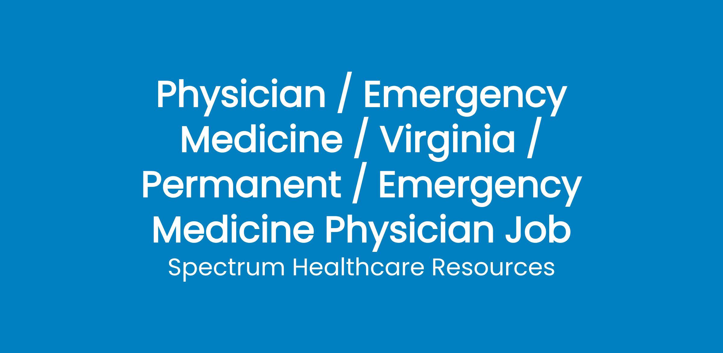 Spectrum Healthcare Resources has an excellent opportunity for a civilian Emergency Medicine Physicianat theVeterans Affairs Medical Centerin Hampton, VA. The veterans in Hampton, Virginia need your help. We have shifts available at the Hampton VA Medical Center. It is a low acuity facility. As an Emergency Medicine Physician at Hampton VA you will not handle Trauma or Peds. The most common diagnosis are chest pains, Gastroenteritis, and COPD Exacerbations. To paint a clearer picture, if you are looking for a slower paced, less aggressive ER environment, the Hampton VAMC is your best bet. Position Highlights: - Outpatient environment - Emphasis on work-life balance Freedom from on-call responsibilities - Double physician coverage from 10am to 7pm - Set reimbursement/No fluctuation in income - Excellent hourly salary - Integrated EMR - Modern equipment and facility - Compliant patient population who are truly appreciative of the care they receive Requirements: - Any state medical license - Board Certified/Board Eligible in Emergency Medicine - Experience working in an Emergency Room setting, 12 months within the last 24 months - DEA and Controlled Substance Licensed - Current BLS & ACLS life support certifications For More Information Contact: Kathleen Strautmann About Hampton, Virginia: The coastal city of Hampton is a highly-desired destination. With a comfortable climate, affordable cost of living, and a multitude of attractions, there are many reasons to make this city your new home. Some highlights include: - Visit the Fort Monroe National Monument - Spend a day exploring the Grandview Nature Preserve - Children and adults alike with enjoy the Virginia Air and Space Science Center - Relax in the sun at one of the three main beaches Company Overview: At Spectrum, we utilize over thirty-five years of experience providing optimal solutions for federal agencies that are both innovative and cost-effective. We hold ourselves to the highest standard to ensure successful outcomes for the facilities and healthcare professionals we serve. As a Joint Commission Certified Healthcare Resource, dependability and service are the driving forces of our mission. EOE/Disabled/Veterans