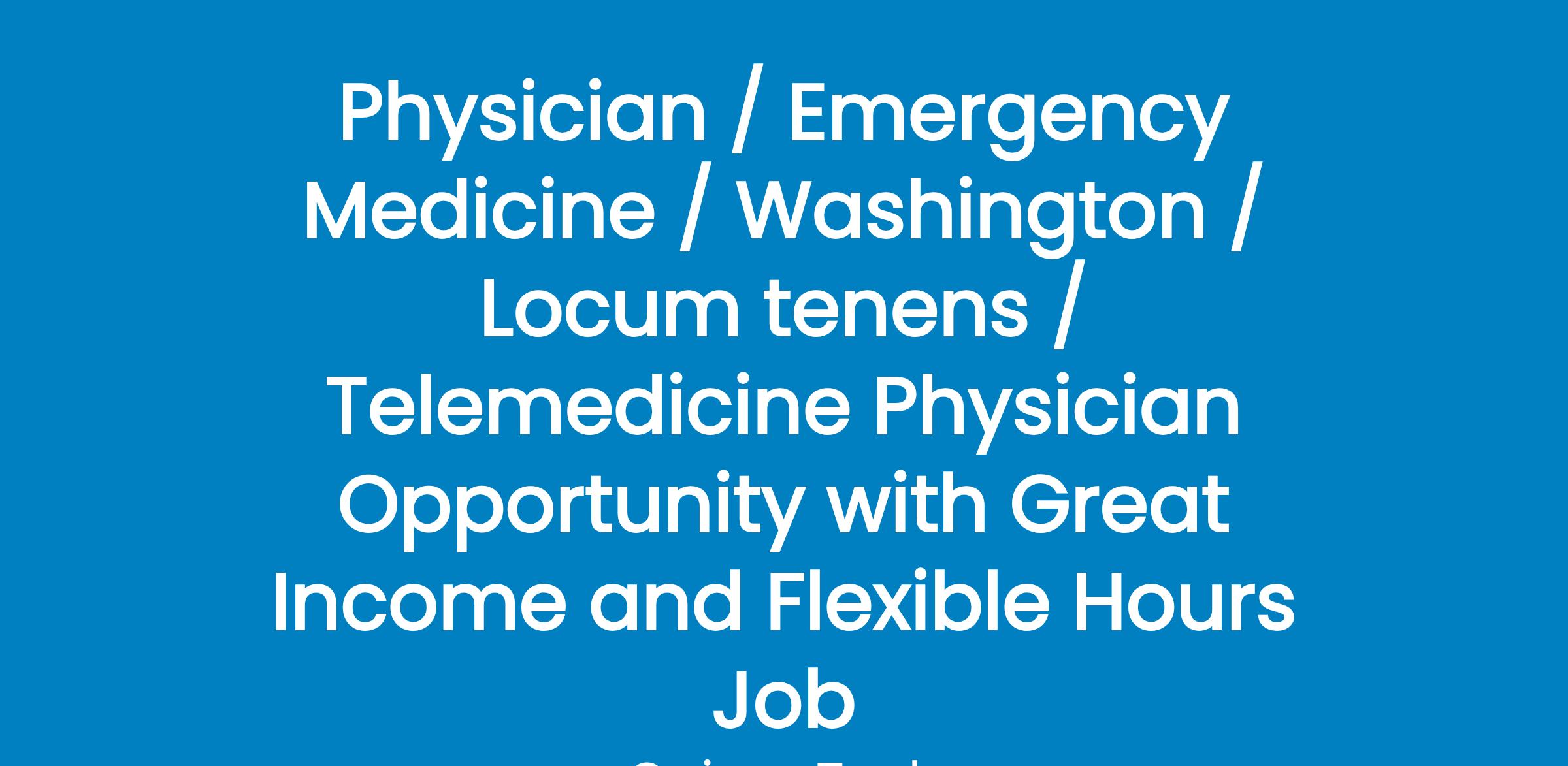 Physician / Emergency Medicine / Washington / Locum tenens / Telemedicine Physician Opportunity with Great Income and Flexible Hours Job