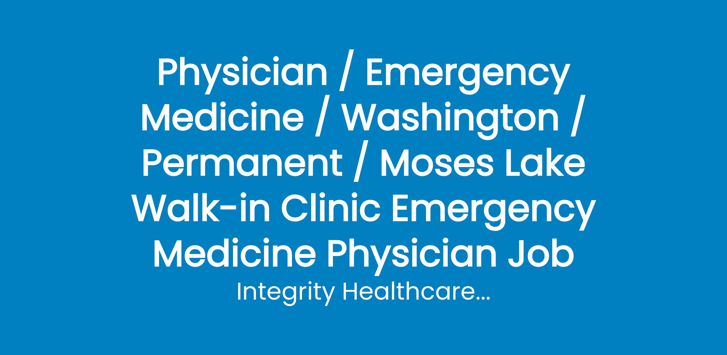 Practice DetailsSeeking a BC/BE Emergency Medicine Physician to join a fast-paced walk-in clinicFlexible 13 shifts per month in year one and 12 shifts per month year 2 and beyondOutpatient only no callLab, X-ray CT scan and MRI on siteMulti-specialty clini9c with supportive team and specialist readily available for support2 providers, 2 clinical nurses and 1 MA per shift70-80patients per shift wintertime; 60 patients per shift summertime with 2 providers8:30A -6:30P weekdays; 8:30A-3:30P weekendsEMR system is EPICCompensation and Benefits1-year physician partnership track for US candidatesPhysician leaders and decision makers at all levels of the organizationInternal student loan repayment of up to $125kSigning bonus, 6 weeks PTO, matching 401k, life insurance, long term disability plus moreRelocation expenses covered including packing " up to $20kCME allowance of $8k every 2 yearsGenerous healthcare stipend of $618 per month to cover health care benefits and moreNavigate Student loan Counseling for the life of your loan repaymentVital Work Life Employee Assistance ProgramCommunity Moses Lake has a dry climate, and is classed as a semi-arid Climate. It is warm during summer, when temperatures tend to be in the 80s (F) and somewhat cold during winter, when temperatures tend to be in the 30s (F). The warmest month is July, with an average maximum temperature of 88.20 F (31.22 C). The coldest month is January, with an average minimum temperature of 21.70 F (?5.72 C).Temperature variations between night and day are greater during summer (27 F (?3 C , and less during winter (14 F (?10 C .The annual average precipitation at Moses Lake is 7.69 inches (195 mm). Although rainfall is evenly distributed throughout the year, it is not unusual in mid-summer for a month or six weeks to pass without any measurable rainfall. The wettest month is December with an average rainfall of 1.19 inches (30 mm)Seattle 2.5 hrs.RequirementsBC/BE requiredActive Washington medical license or ability to obtain