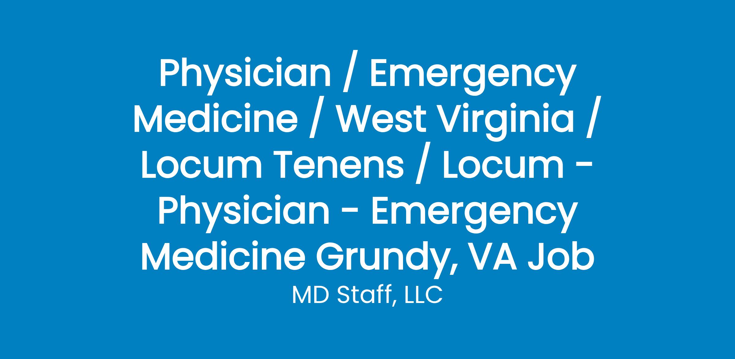 Locum Tenens Opportunity: Emergency Medicine Physician