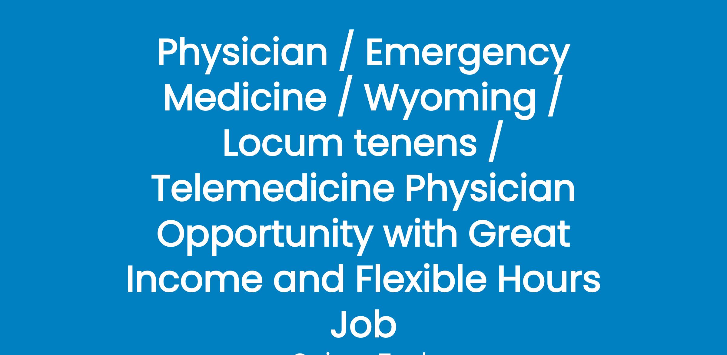 Physician / Emergency Medicine / Wyoming / Locum tenens / Telemedicine Physician Opportunity with Great Income and Flexible Hours Job
