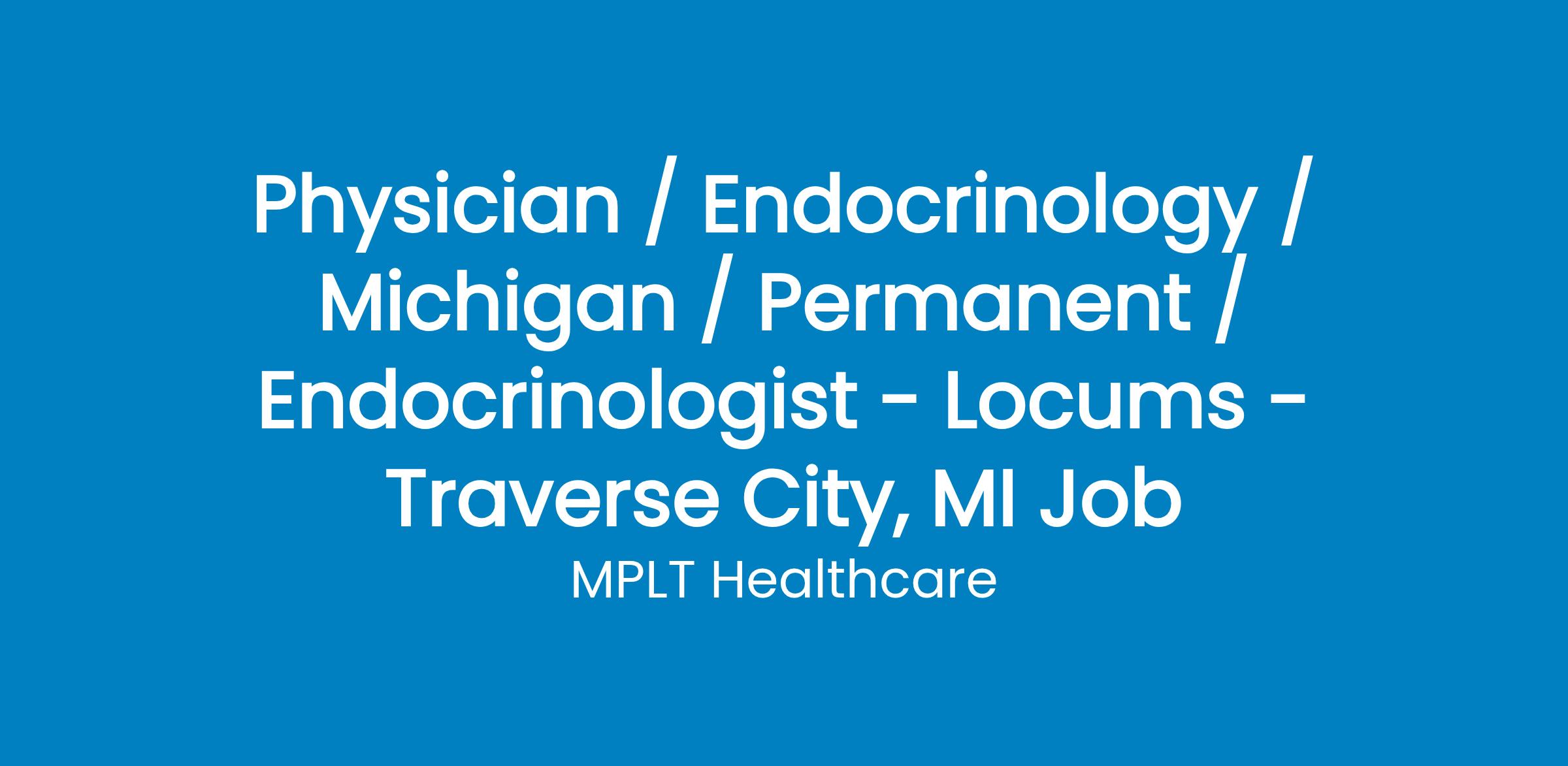 MPLT Healthcare is looking for physicians who Understand the Urgency, Never Give Up, and Have the Courage to Excel in the forever changing medical industry! We have numerous opportunities for an experienced Endocrinologist with highly competitive pay rates in Traverse City, MI.