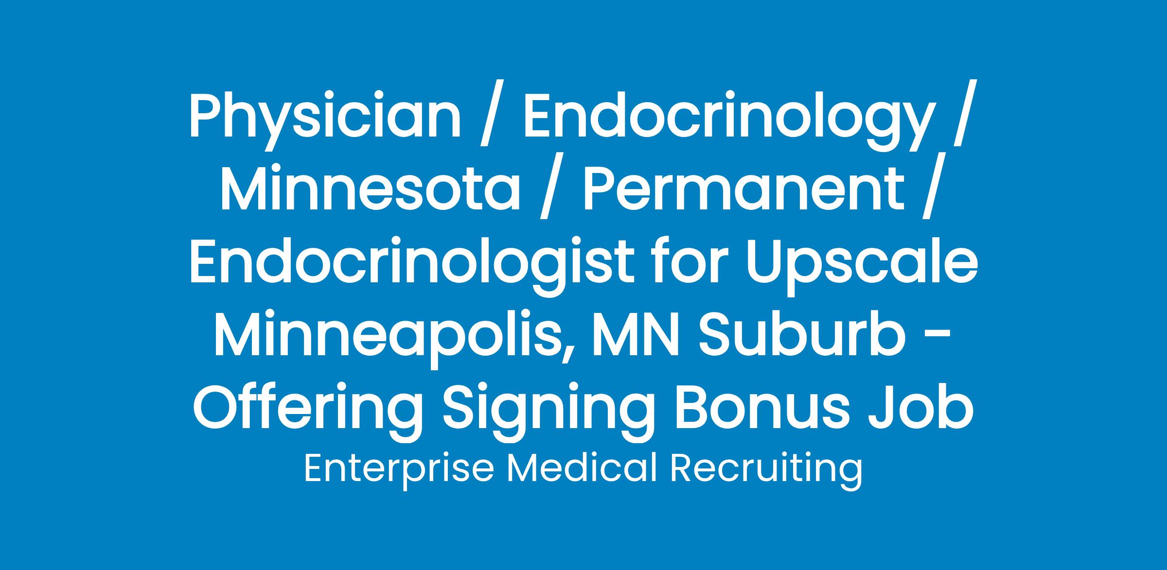 We are scheduling interviews with an Endocrinology Practice in an affluent Minneapolis, MN suburb, adding another Endocrinologist.