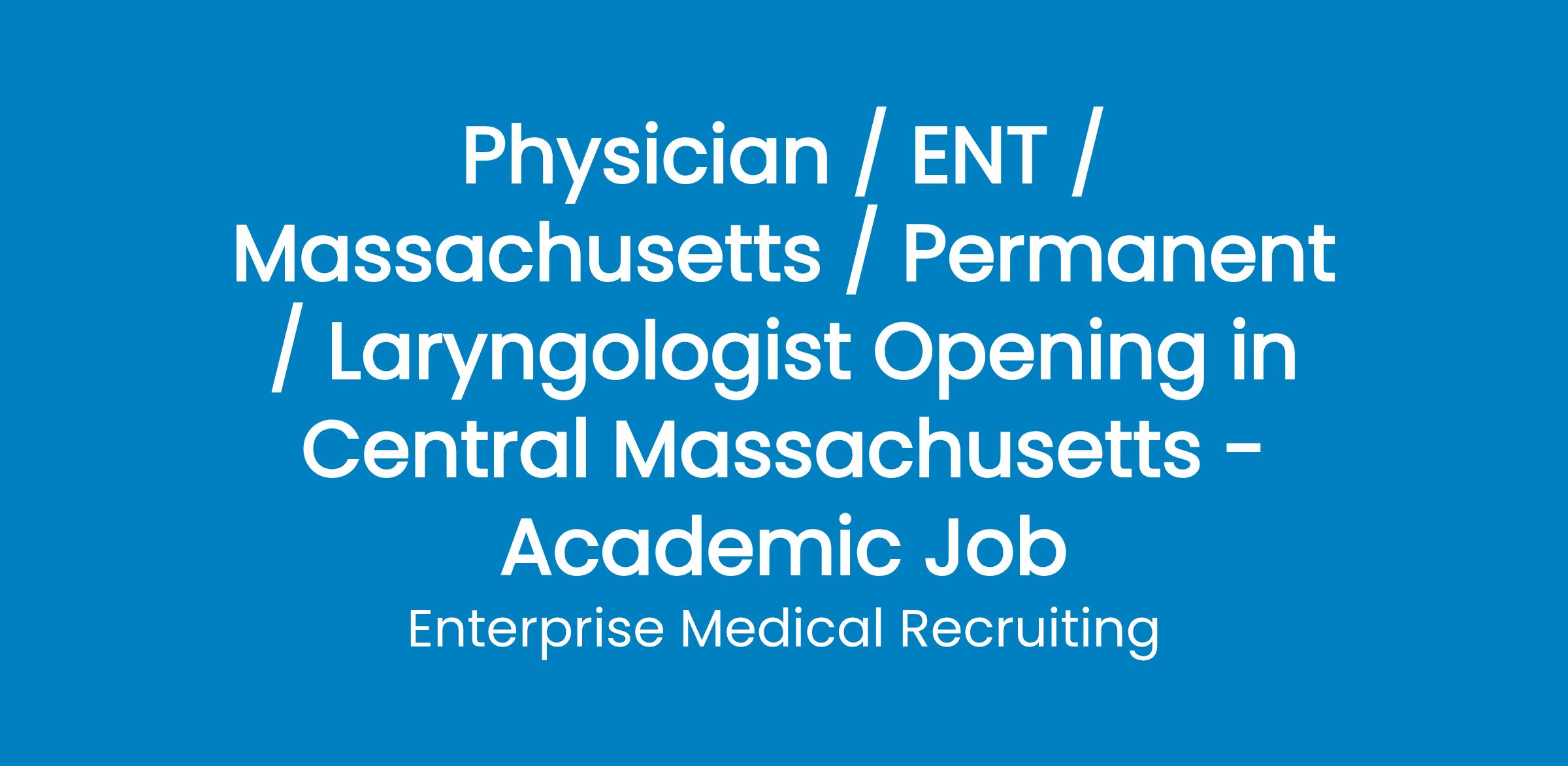 An academic medical center in central Massachusetts is adding an academic fellowship-trained Laryngologist. We are the largest healthcare system in Central Massachusetts.