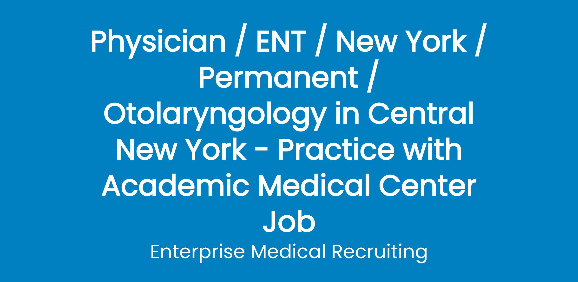 A progressive healthcare network in central New York and a major teaching affiliate of Columbia University, is adding an Otolaryngologist to their staff!