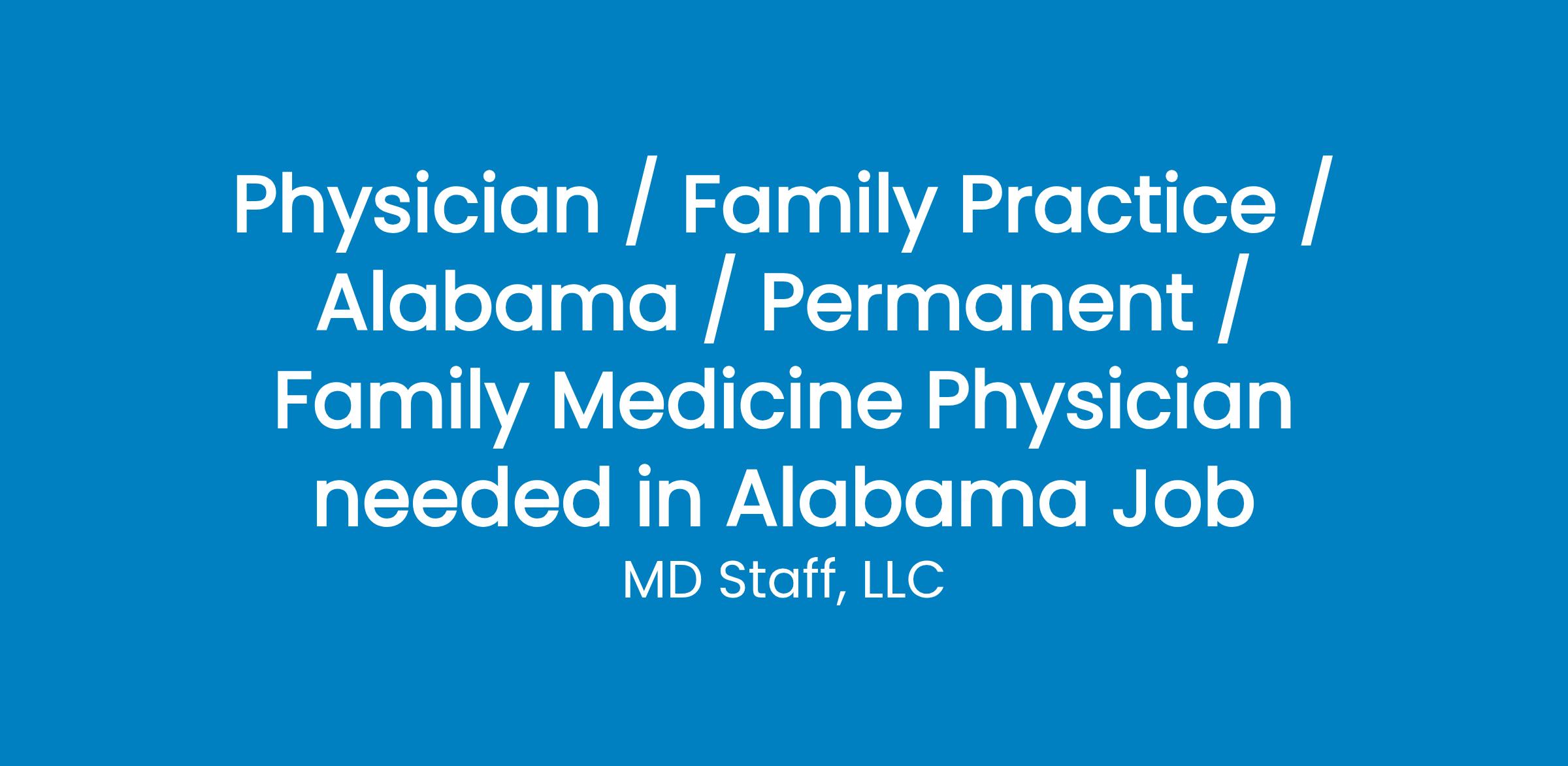 Fantastic Opportunity for Family Medicine Physicians in Alabama