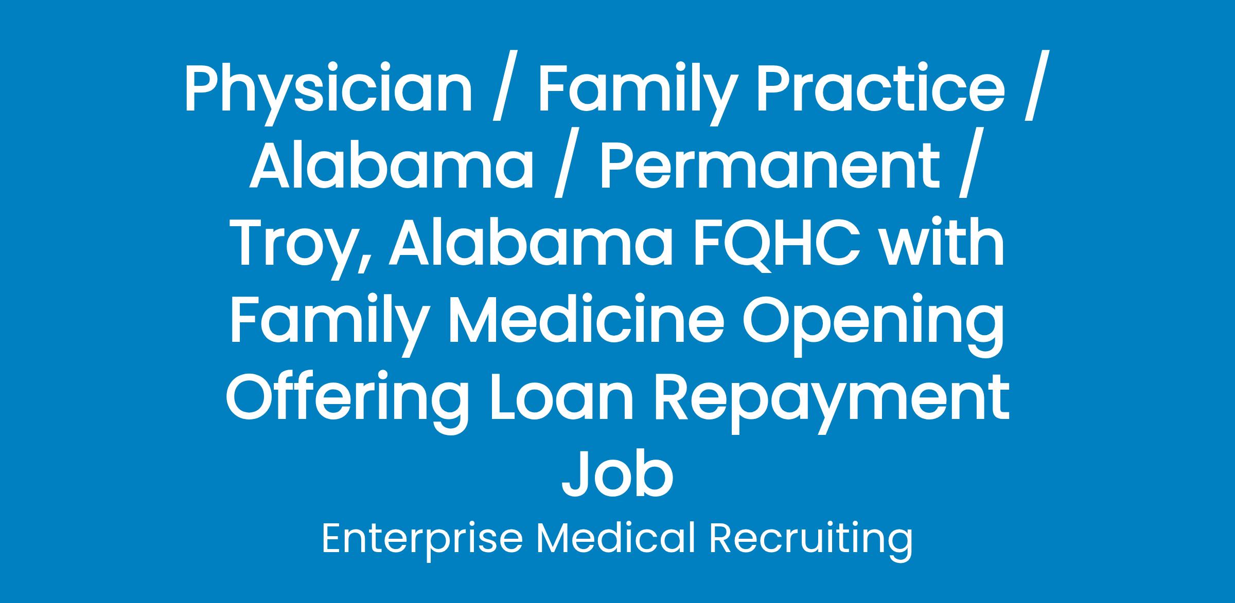 Our organization is currently seeking primary care physicians on behalf of a Federally Qualified Health Center located in Troy, Alabama. This charming city is home to Troy University and has been recognized as one of the &50 Best College Towns to Live in Forever.&