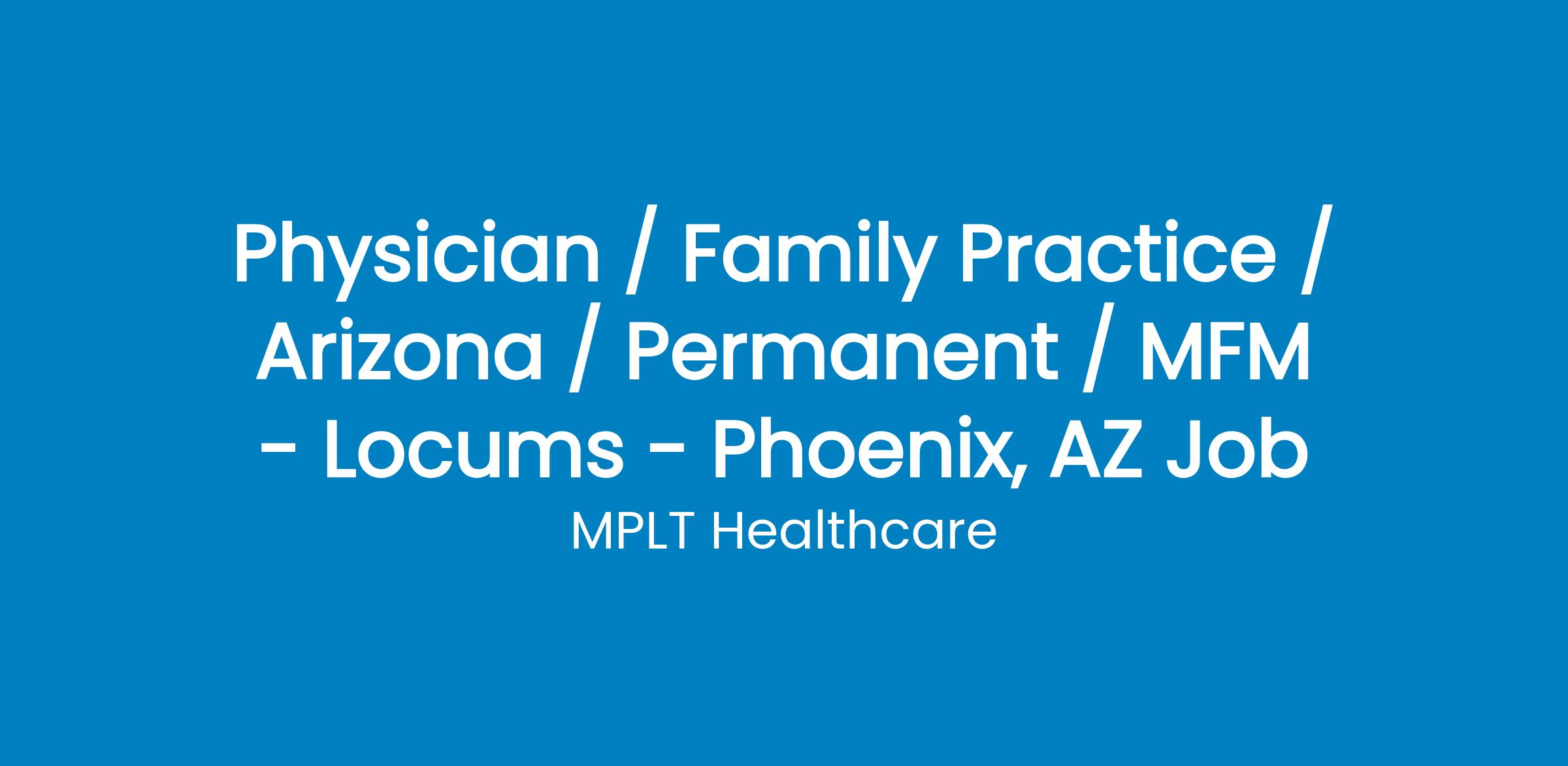 MPLT Healthcare is looking for physicians who Understand the Urgency, Never Give Up, and Have the Courage to Excel in the forever changing medical industry! We have numerous opportunities for an experienced MFM with highly competitive pay rates in Phoenix, AZ .