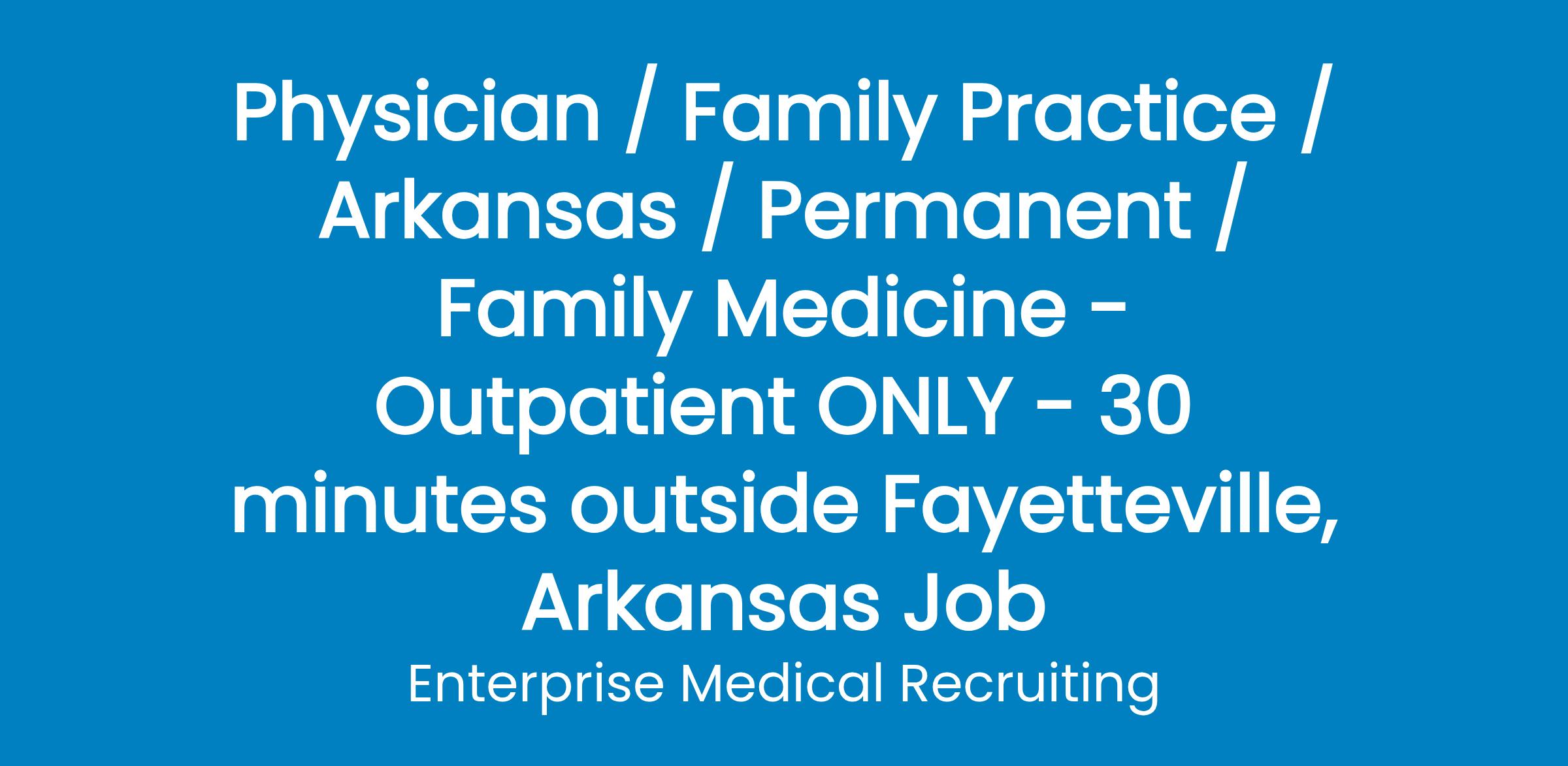 Join a well-established Primary Care Group in beautiful northwest Arkansas! The group is adding a Family Medicine physician due to community growth and demand in Siloam Springs, Arkansas. The opportunity is for outpatient only.