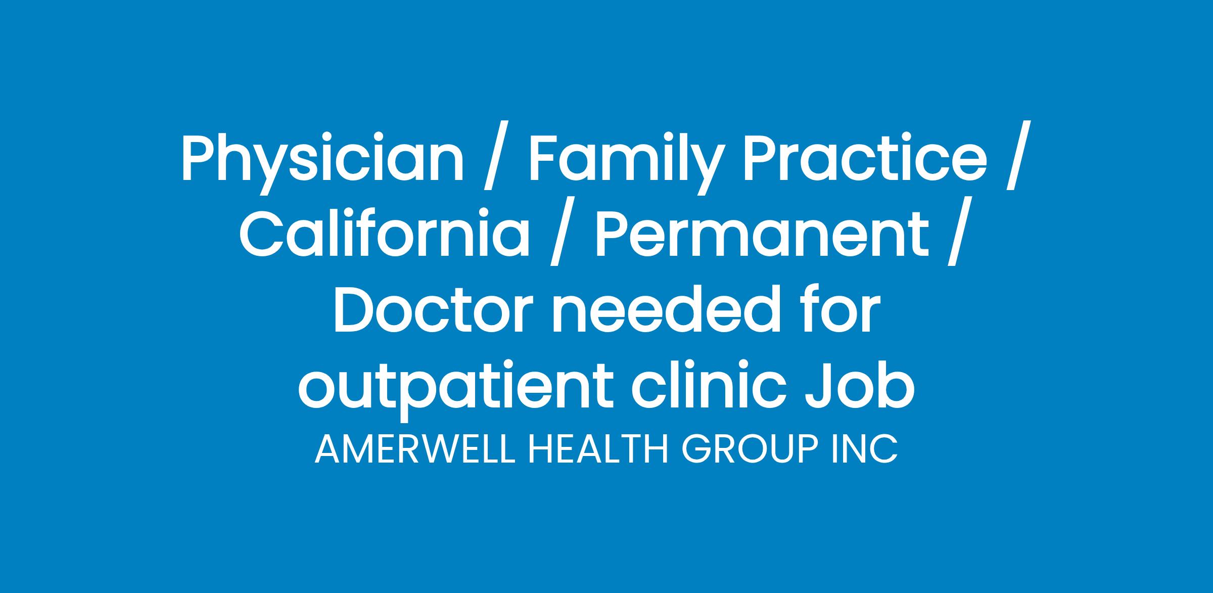 Physician / Family Practice / California / Permanent / Doctor needed for outpatient clinic Job