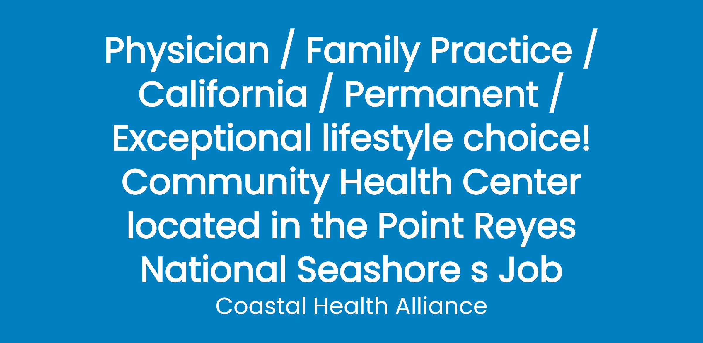 The Coastal Health Alliance (CHA), a federally funded full service family practice, is beginning recruitment of a Family Medicine Physician. Our area is a designated site for National Health Service Corps loan repayment.