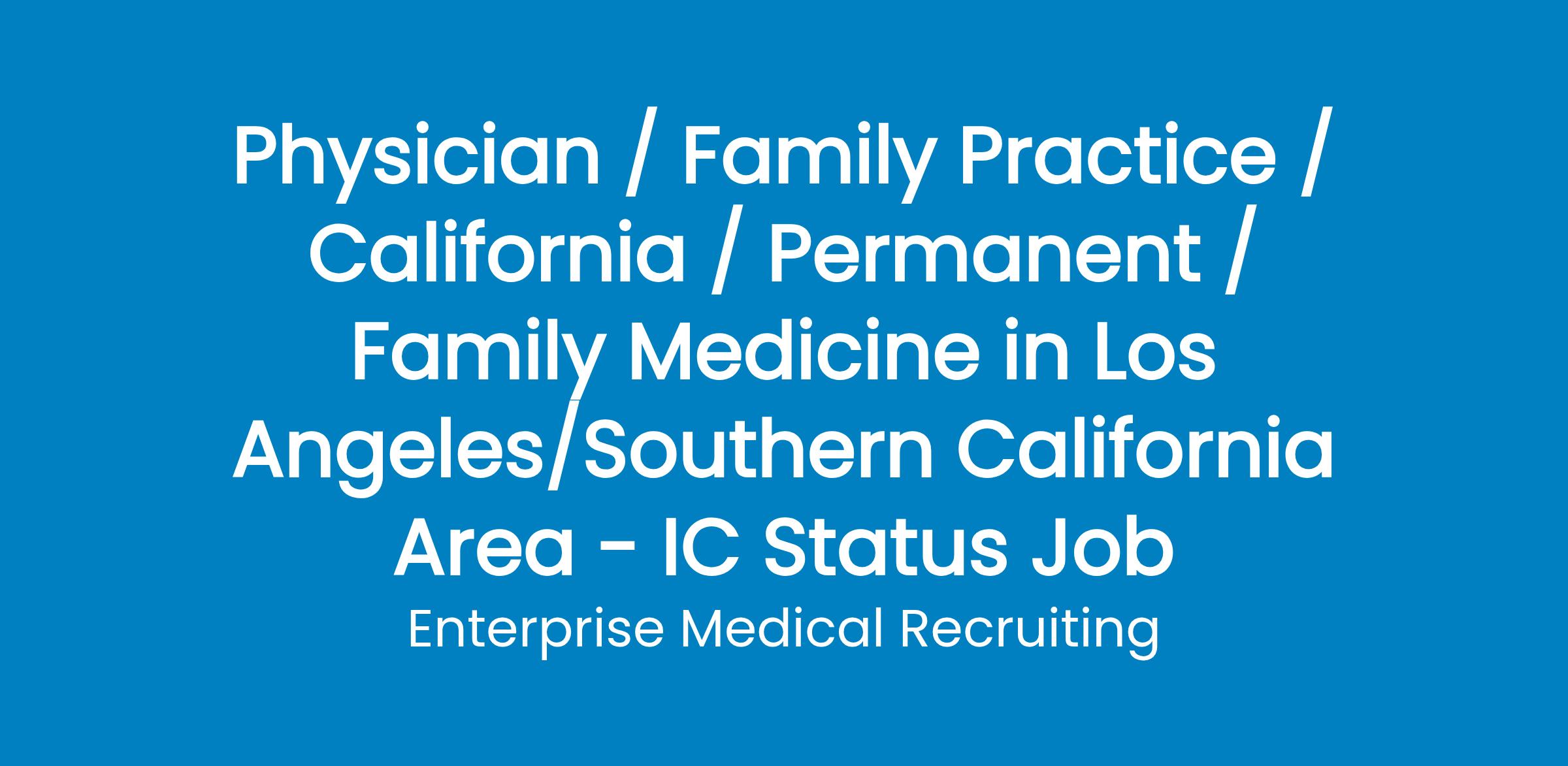 A 15+ provider private group that has served greater Los Angeles/Southern California for over 18 years seeks family medicine physicians for its West Covina, El Monte, and Anaheim offices.
