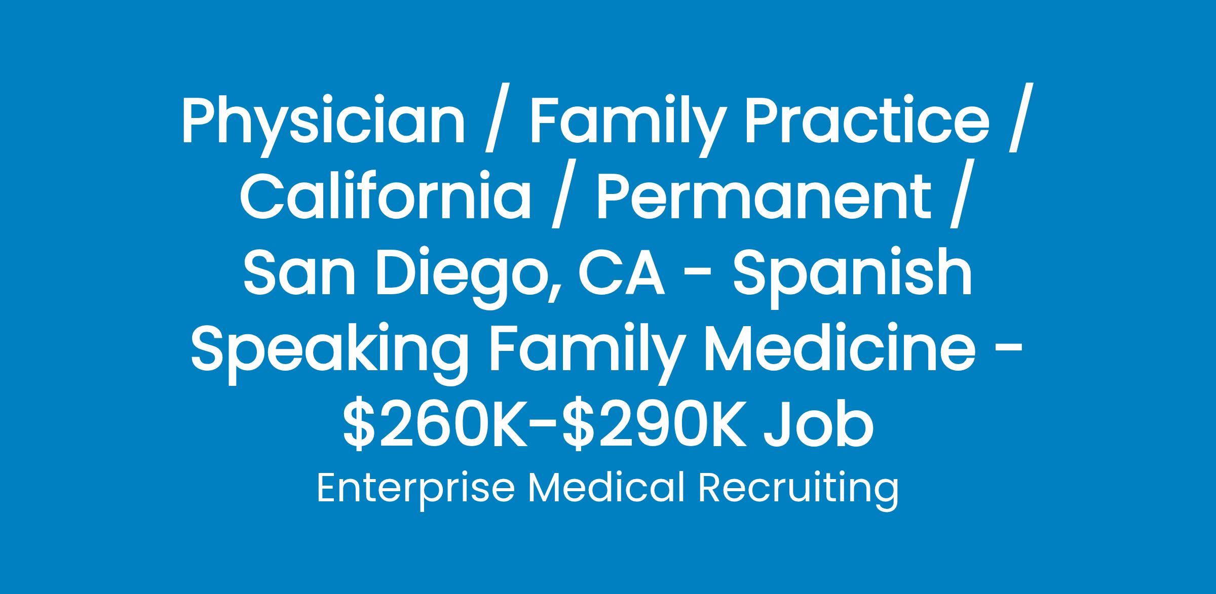 Enterprise Medical Recruiting is assisting a Healthcare system in San Ysidro, CA ( San Diego County) in their search for a Spanish-speaking Family Medicine physician.