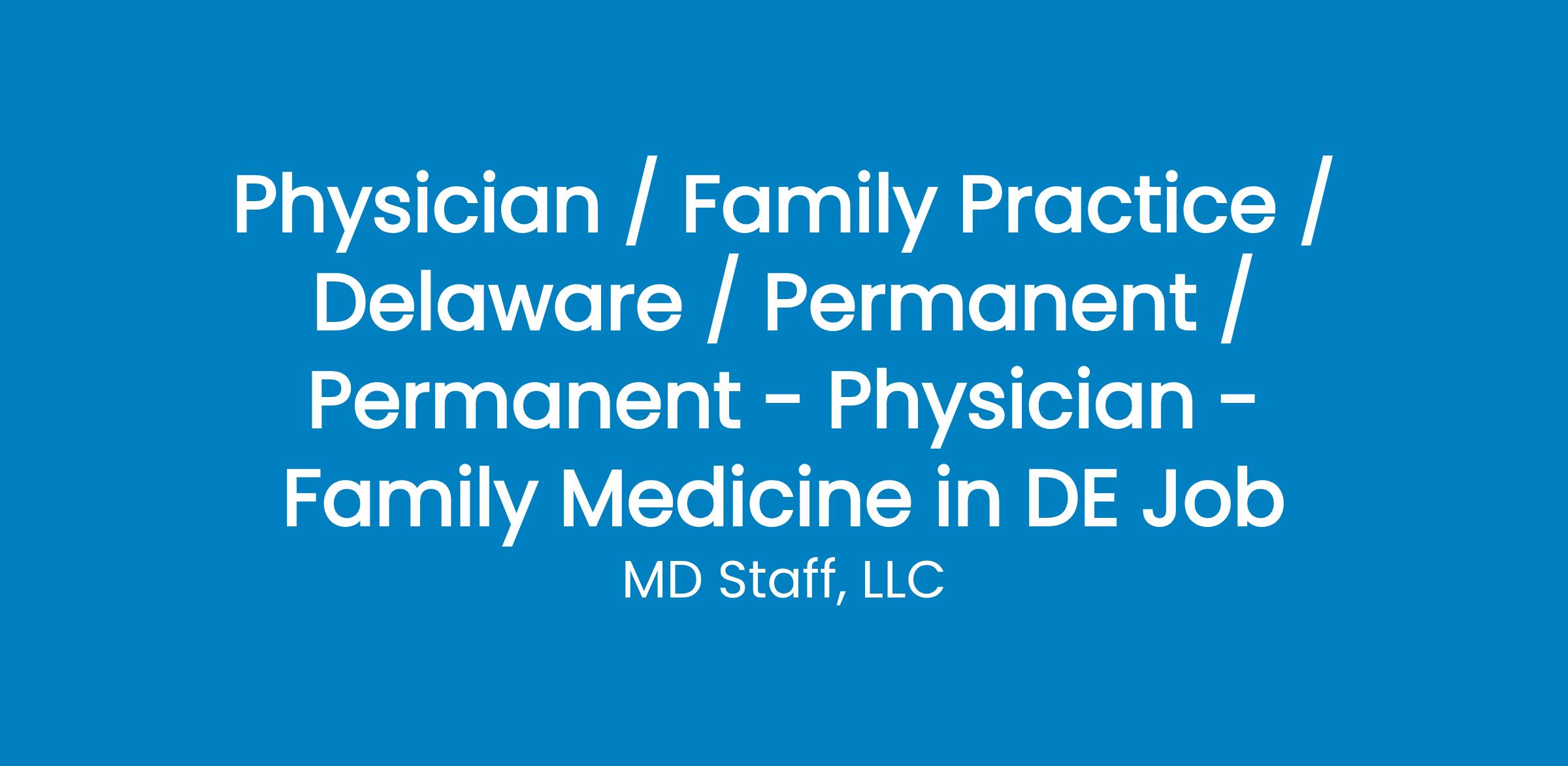 Family Medicine Physician Opportunity Near Delaware City, DE