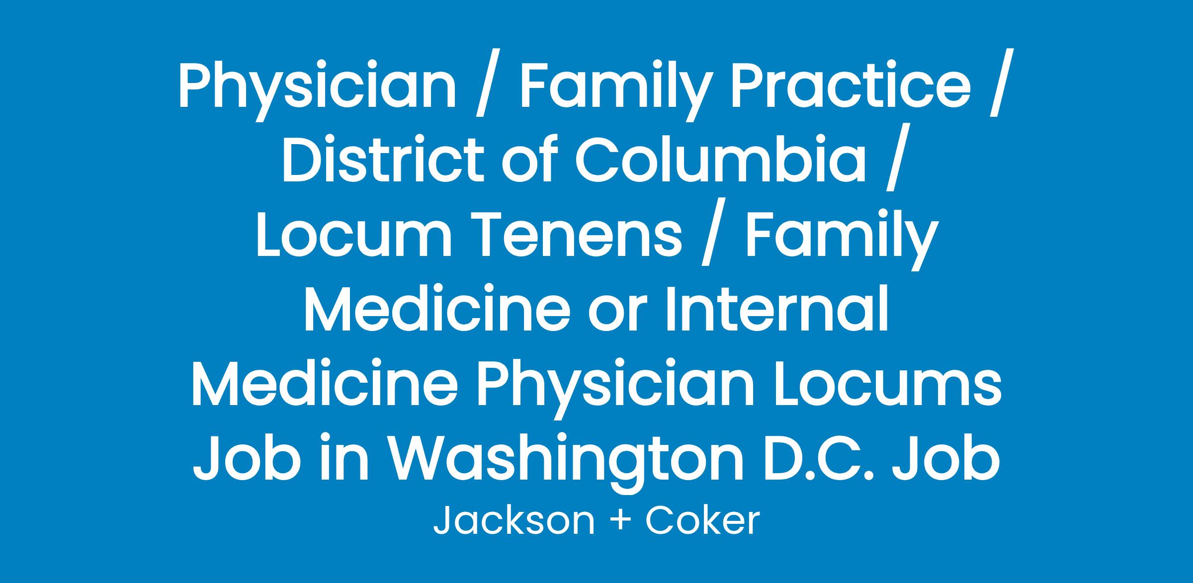 Family Medicine or Internal Medicine Physician Locums Job in Washington D.C.