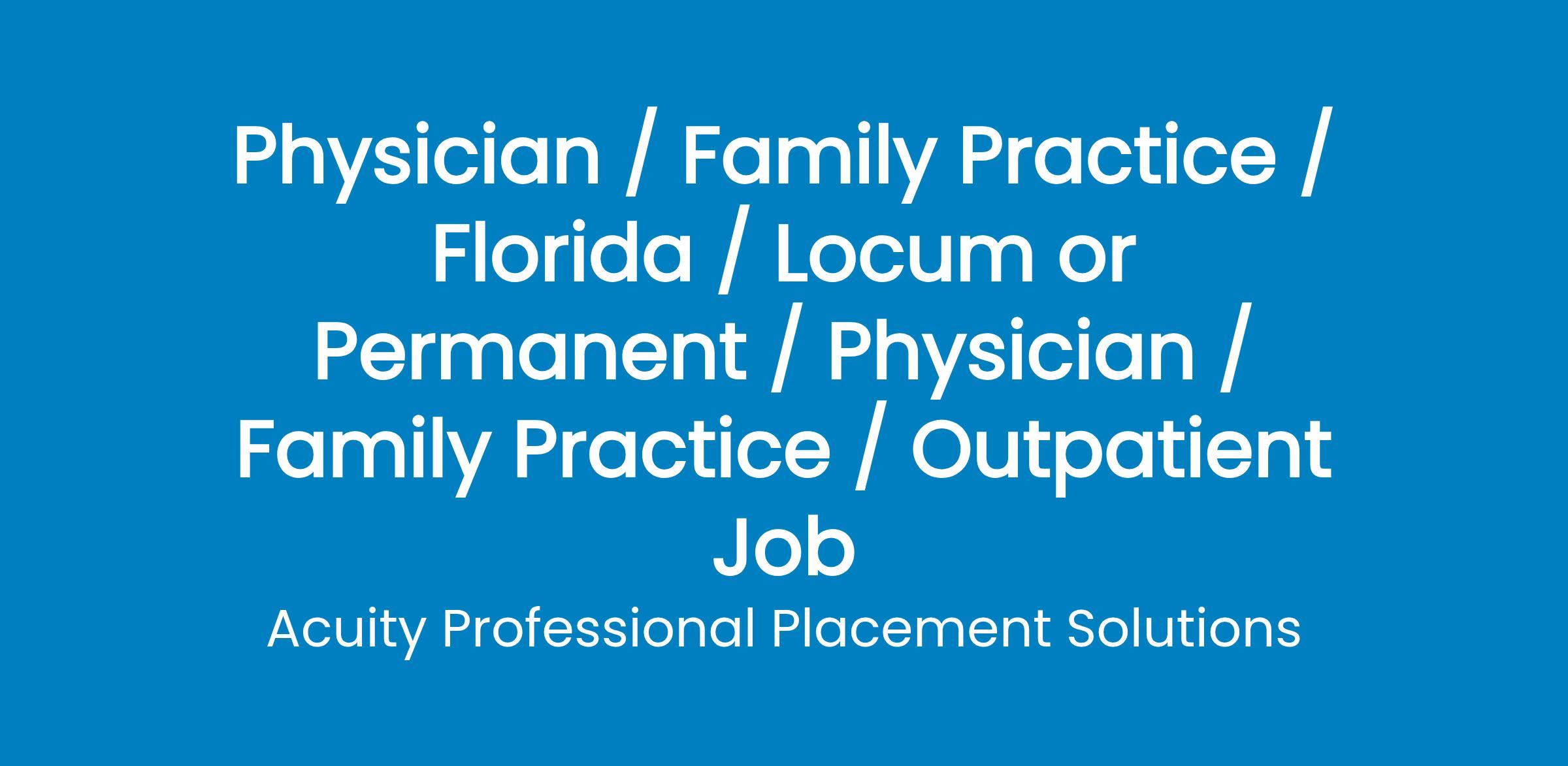 The post Physician / Family Practice / Outpatient appeared first on Acuity Healthcare .