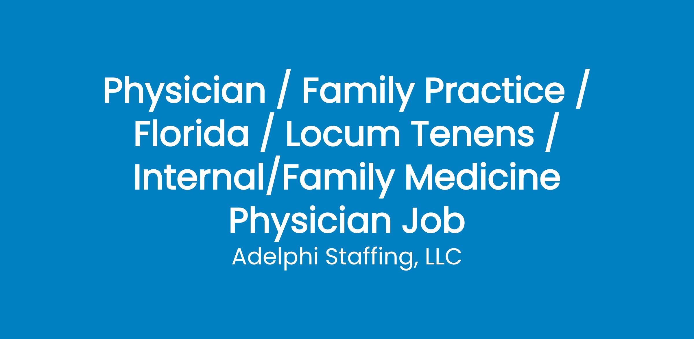 Physician / Family Practice / Florida / Locum Tenens / Internal/Family Medicine Physician Job