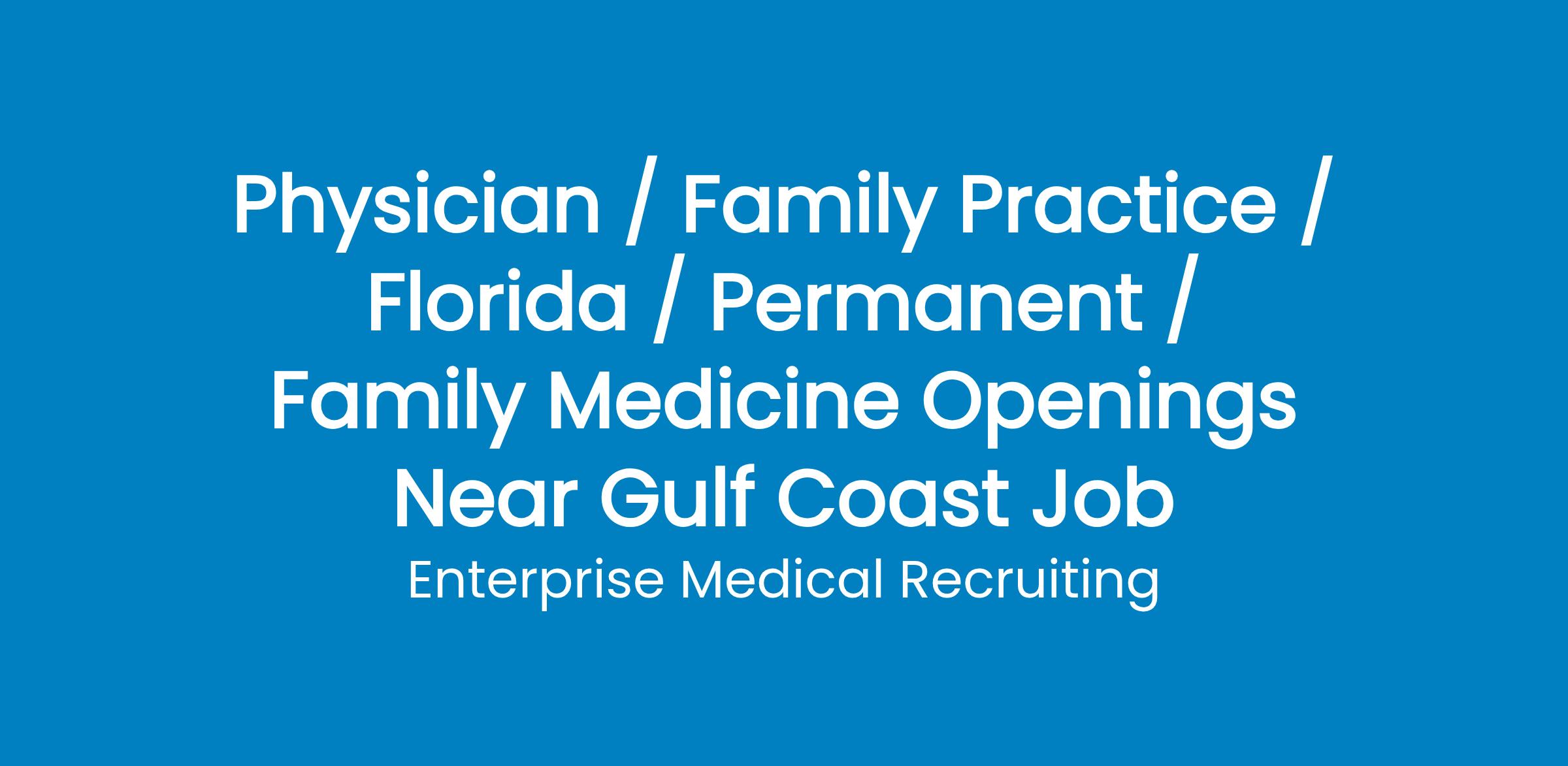 Hospital located north of Tampa, Florida is seeking aBoard Eligible/Certified Family Medicine physicianto join an established multispecialty group.