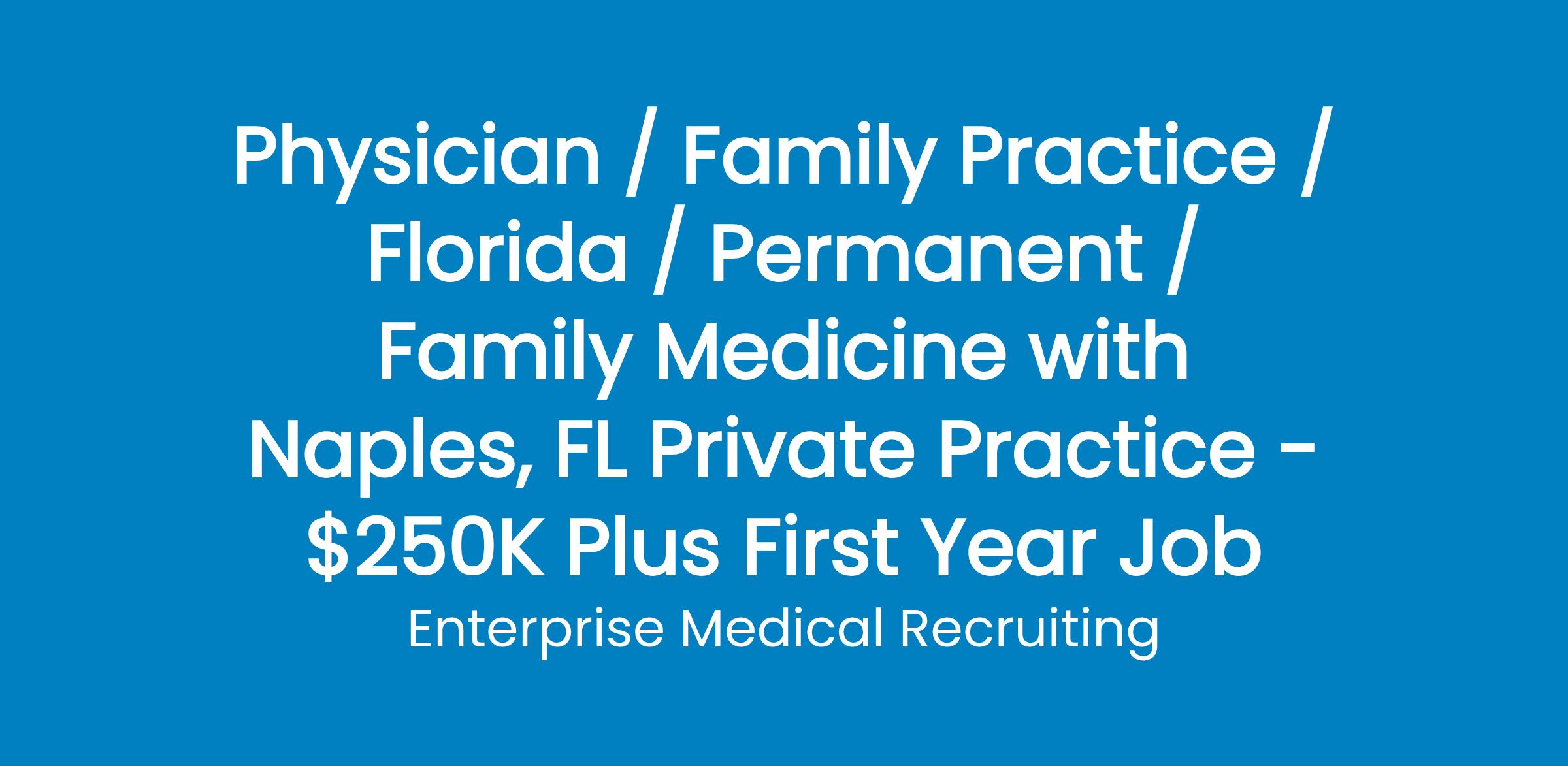 Join a private practice with 2 family medicine physicians and 3 Advanced Practice Providers in Naples, Florida.
