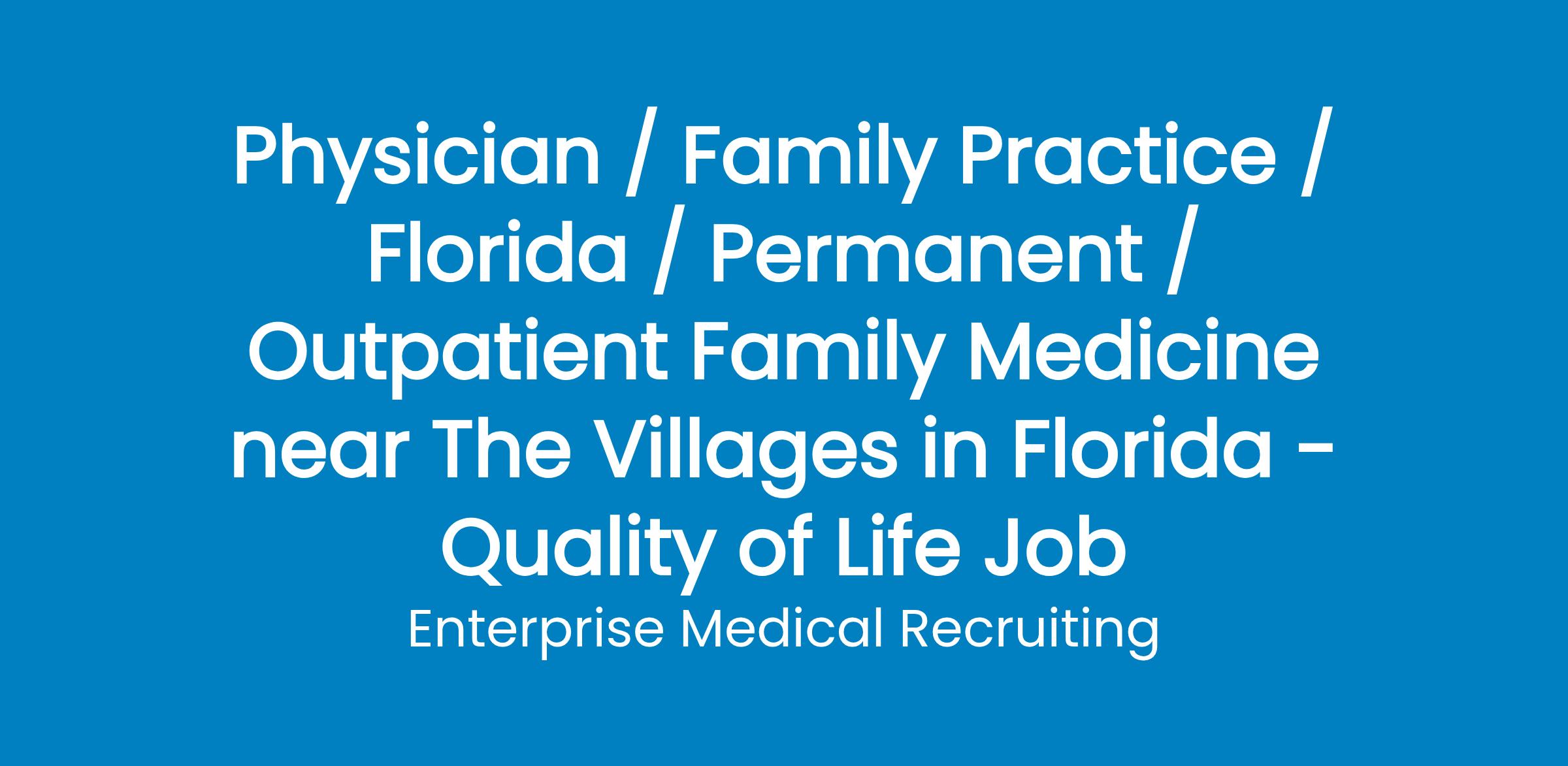A small group practice in Central Florida is seeking an additional Family Medicine physician to meet the community's growing demand.